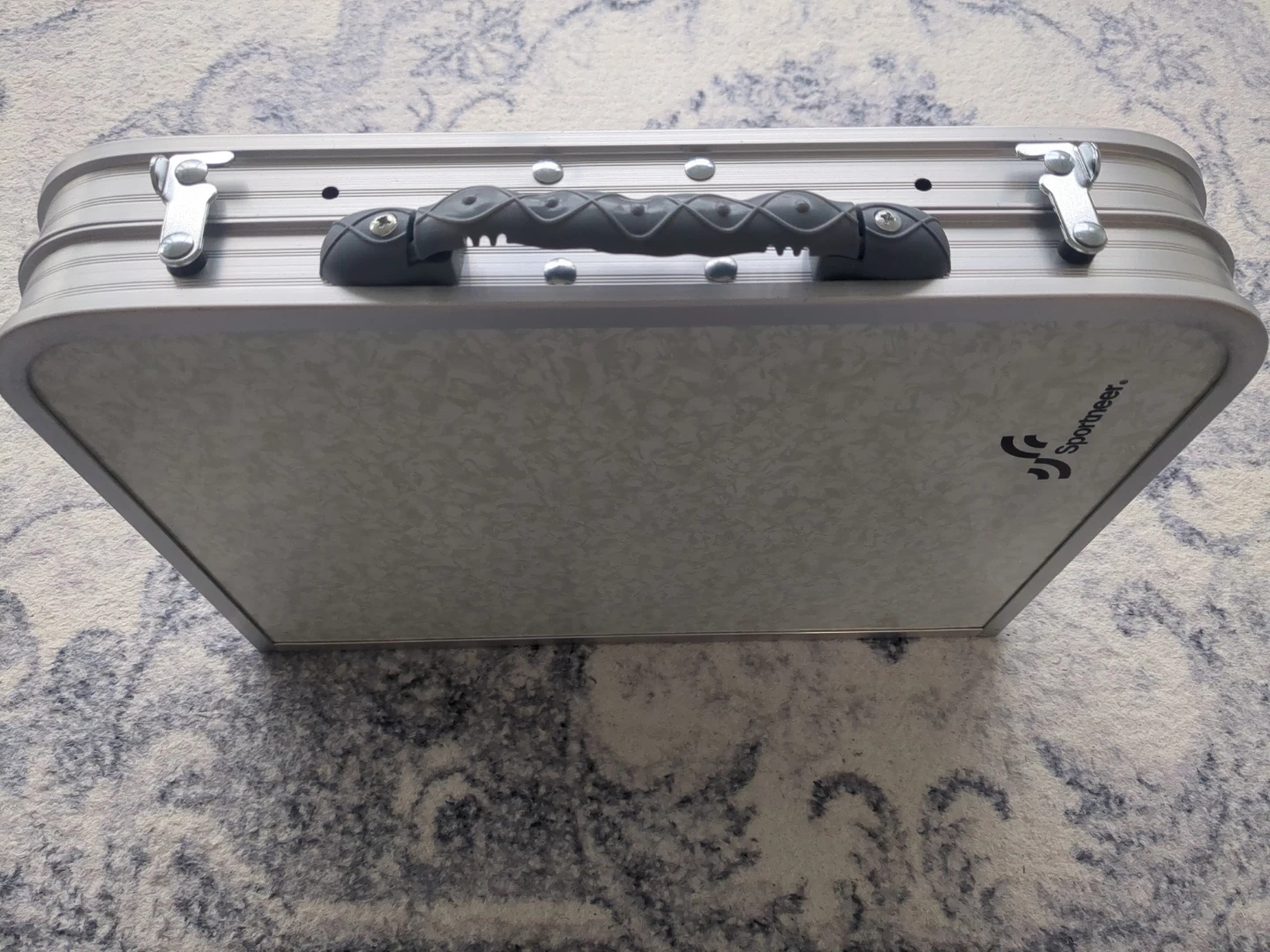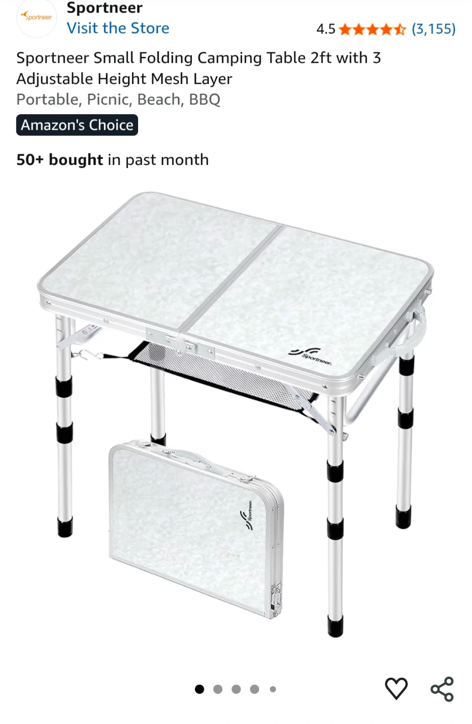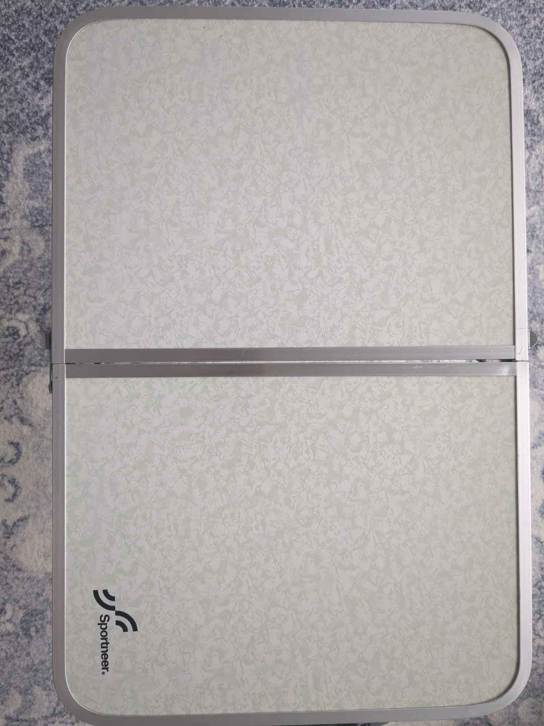 This is a Sportneer portable folding table. It's made of aluminum and features a lightweight, foldable design. It's great for camping or picnics!