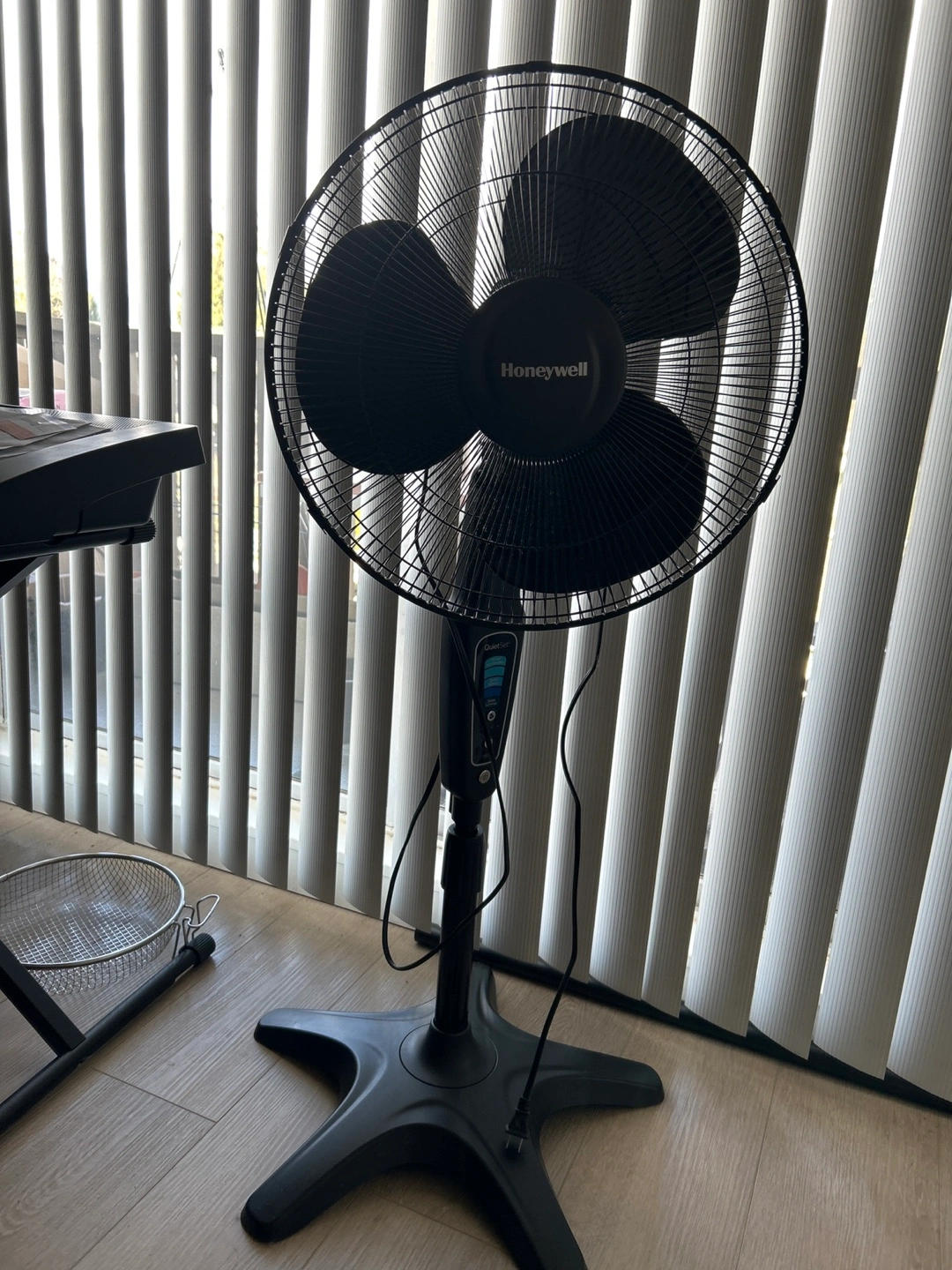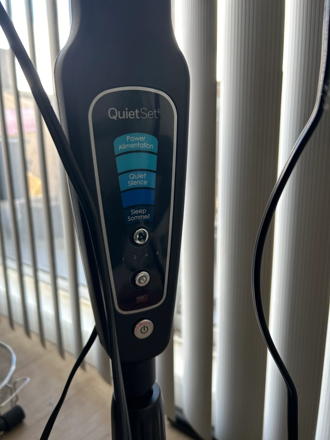 This Honeywell QuietSet stand fan offers multiple speed settings for personalized comfort, including 'Quiet Silence' and 'Sleep' modes. It's a great option for keeping any room cool and comfortable. Includes a remote control for easy operation.