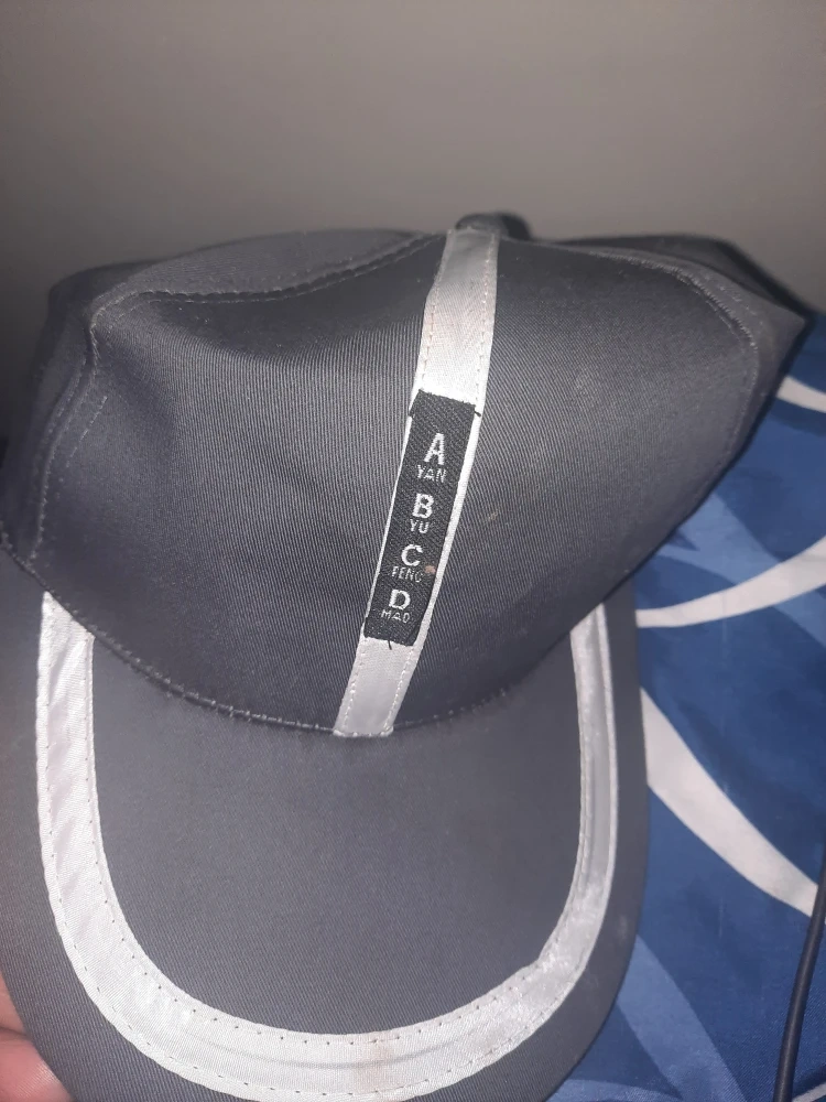 Selling a grey baseball cap with a unique design! It features a vertical stripe with the letters A, B, C, D. Perfect for casual wear and adding a bit of style to your outfit