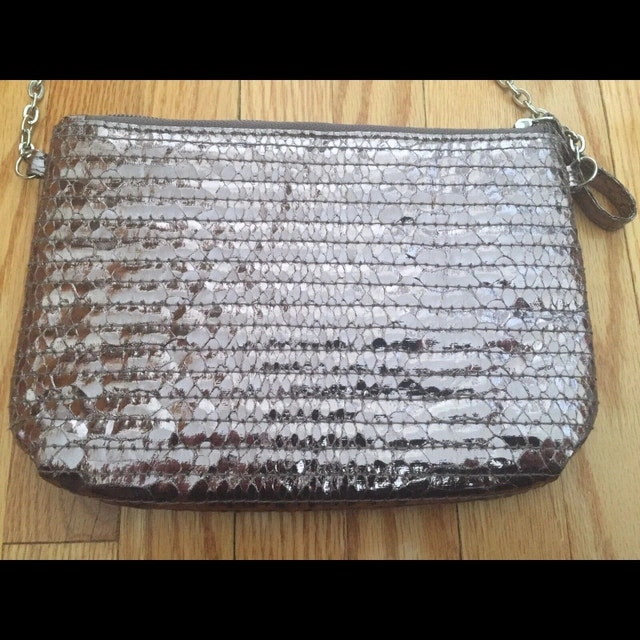 Sparkly purse with approx. 2 foot long metal chain strap.