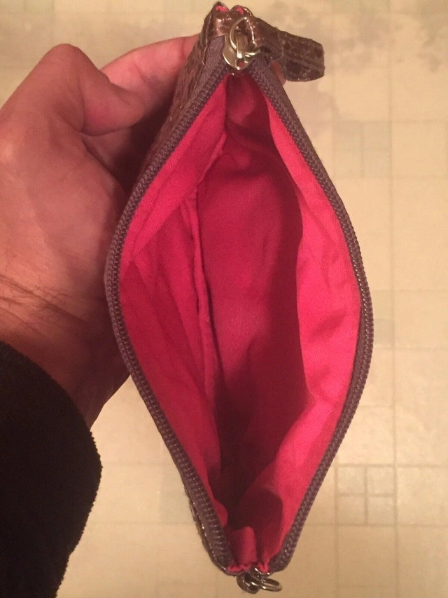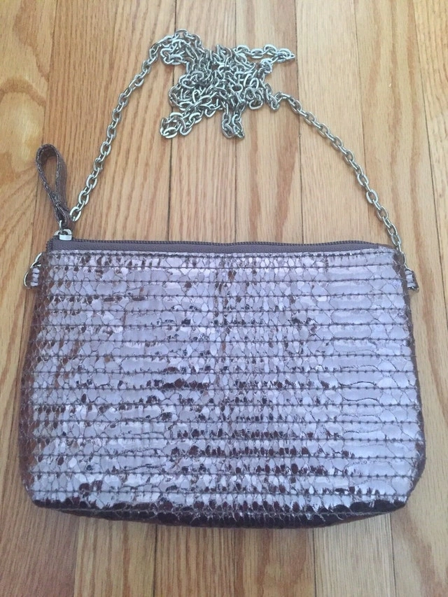 Sparkly purse with approx. 2 foot long metal chain strap.