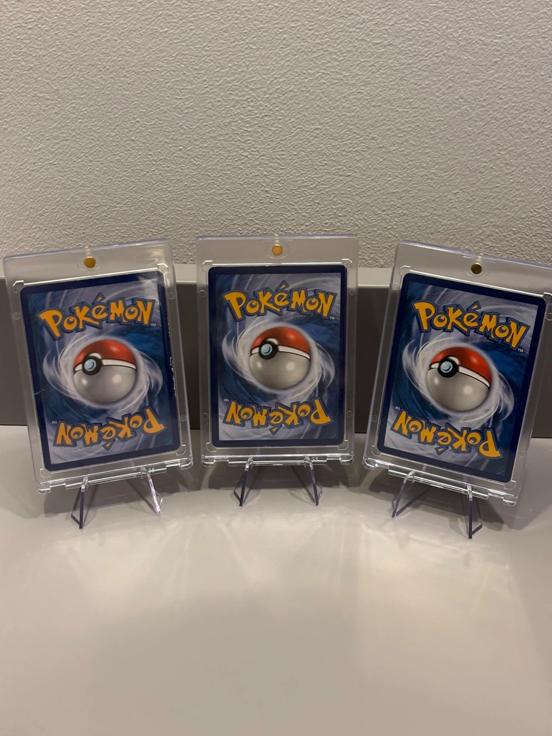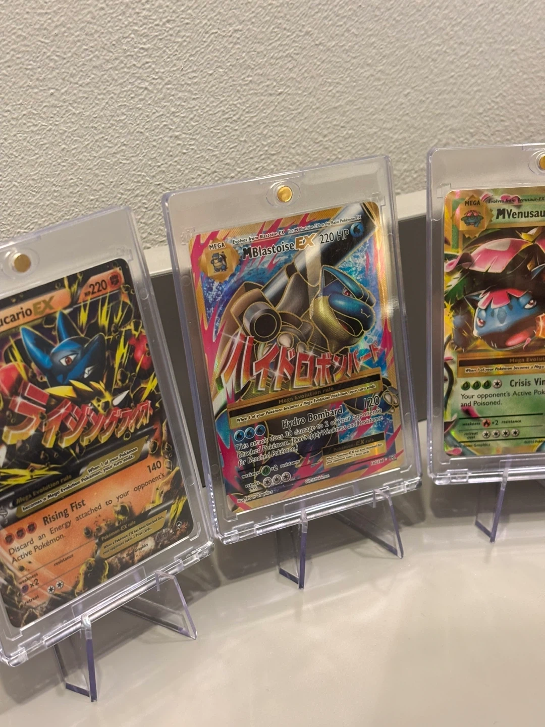 Conditions aren’t mint but all 3 fronts display flawlessly. Backs are lightly played for both Blastoise and Venusaur, and heavily played for the older Lucario.