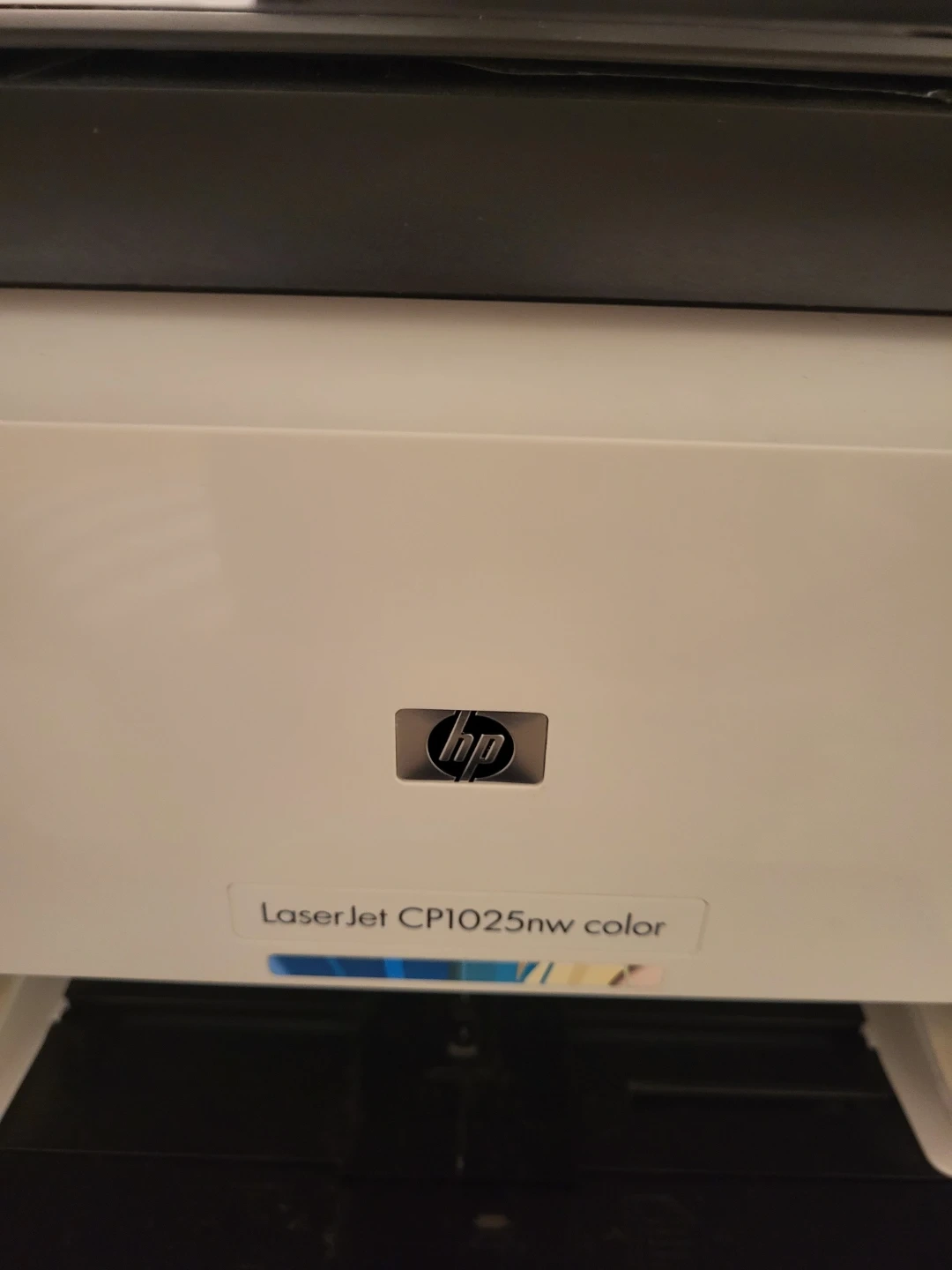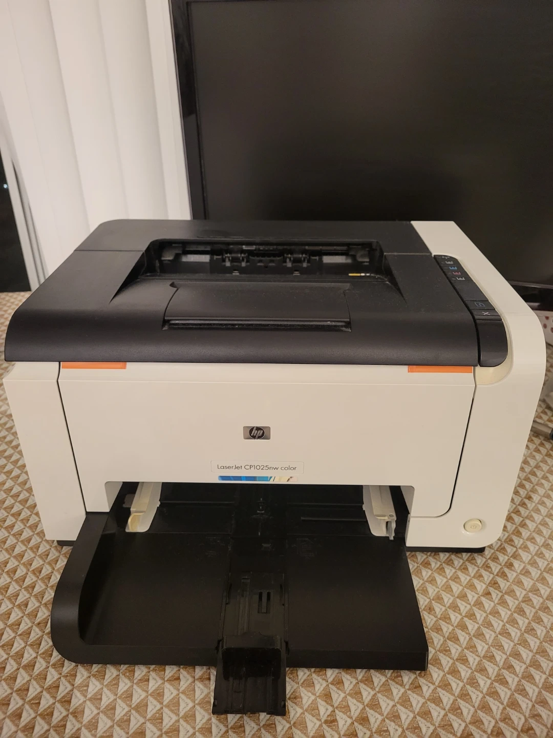 This is an HP LaserJet CP1025nw color printer. It's a compact laser printer designed for small offices or home use. Get vibrant colour prints quickly!