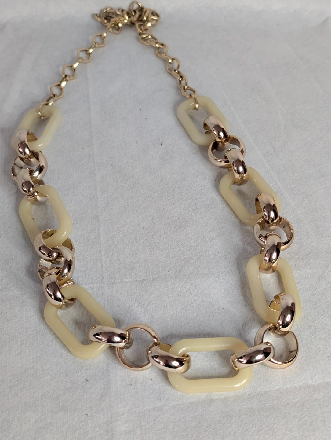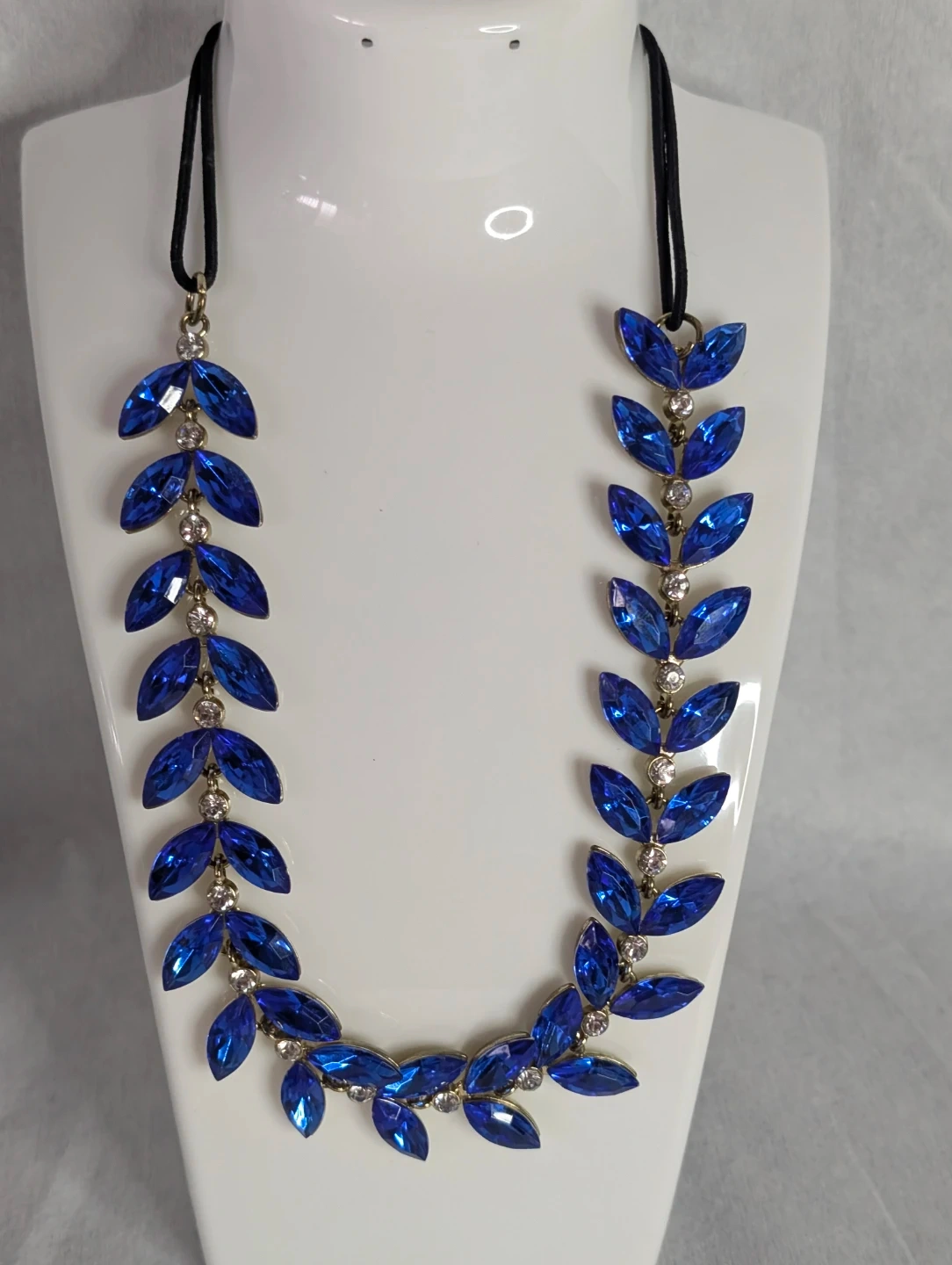 A stunning gold-toned necklace designed with intricate leaf motifs. This statement piece adds a touch of elegance to any outfit. It's a unique accessory for special occasions.