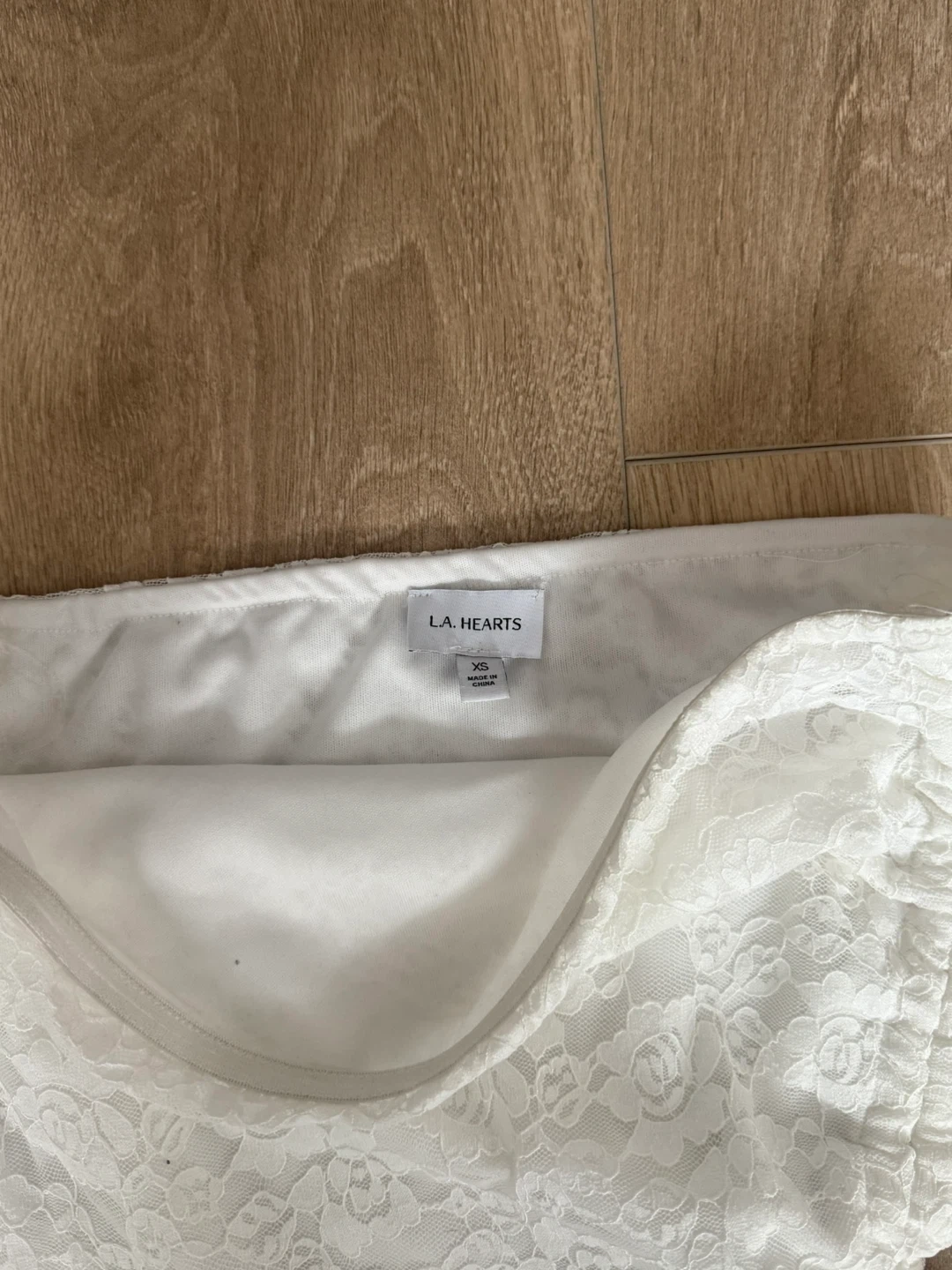 PacSun, L.A. Hearts white lace tube top. It's a womens size XS. Features a drawstring tie detail. Only worn once, Im selling since Im a student! I do discounts on bundles!!