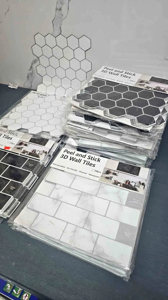 Upgrade your kitchen or bathroom instantly with our Peel & Stick 3D Waterproof Wall Tiles! Waterproof & Heat Resistant. Easy DIY Installation – No Glue Needed. Perfect for Kitchen Backsplash & Bathroom Walls. Modern 3D Design. Easy to Clean. Special Clearance Price: ONLY $20 per pack. 1 Pack = 10 Pieces. Let me know if you're interested!