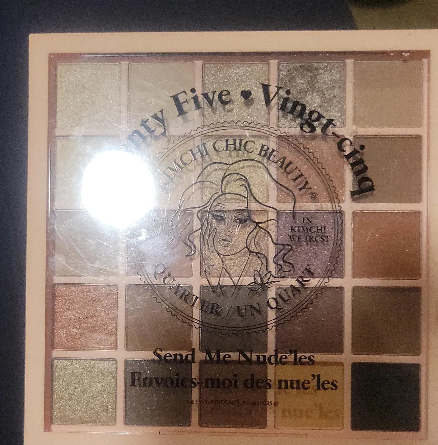This KIMCHI CHIC BEAUTY eyeshadow palette features 25 nude shades. Net weight is 0.5 oz (25g). It's great for creating various neutral looks!