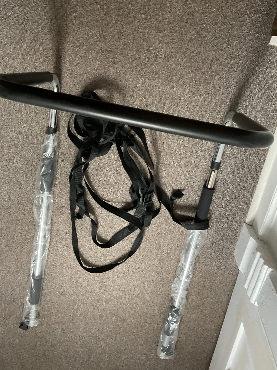 Selling a gently used bed rail with straps to anchor on box spring. Slides under mattress. It's in good condition, slight blemish on handle, from use (as shown in photo). Easy to install and ready to assist a new owner.