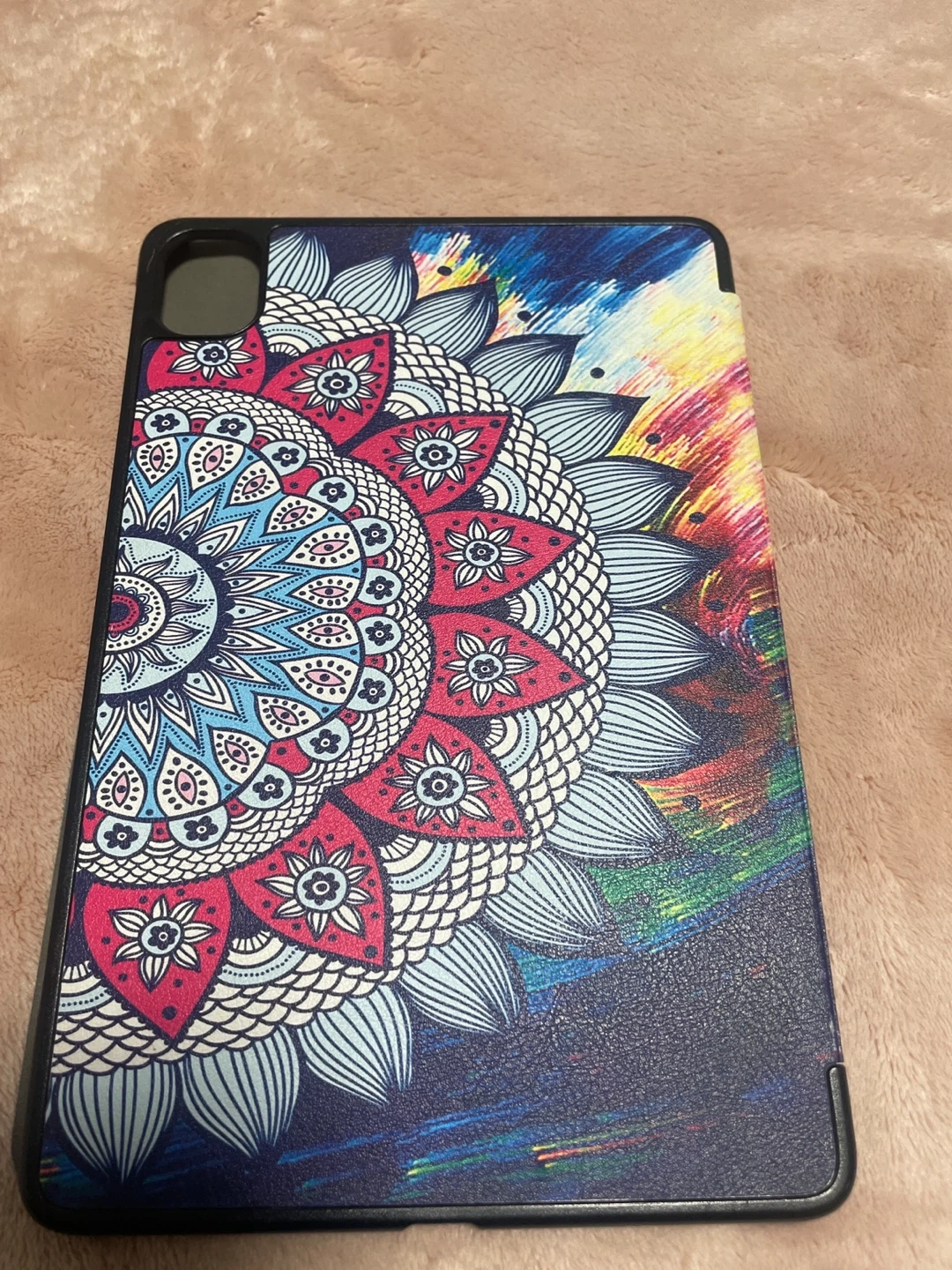 Xiaomi tablet with a vibrant, artistic Mandala-style case. It's perfect for everyday use and entertainment. The tablet has a sleek black finish and runs on Xiaomi HyperOS. Includes the protective case!