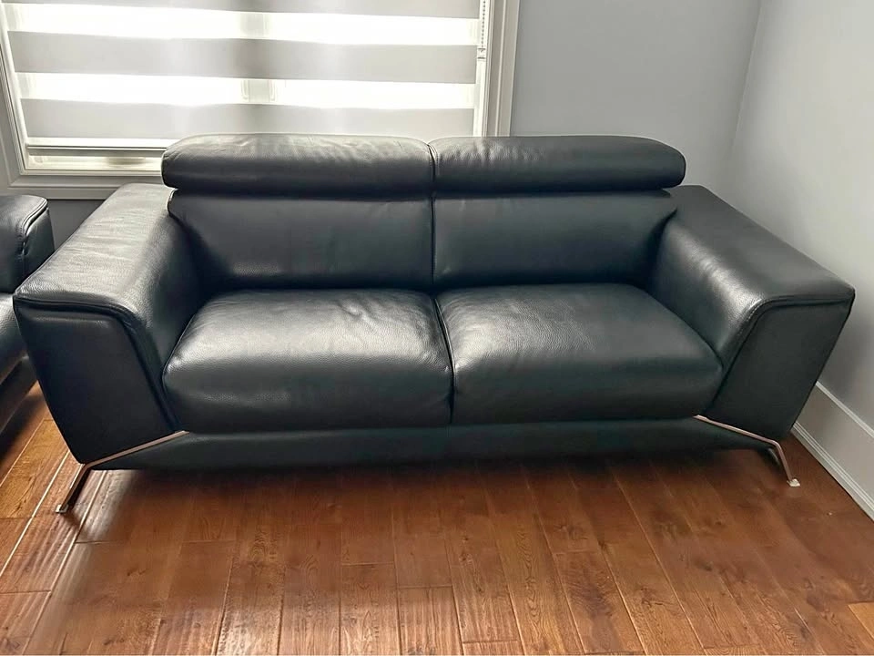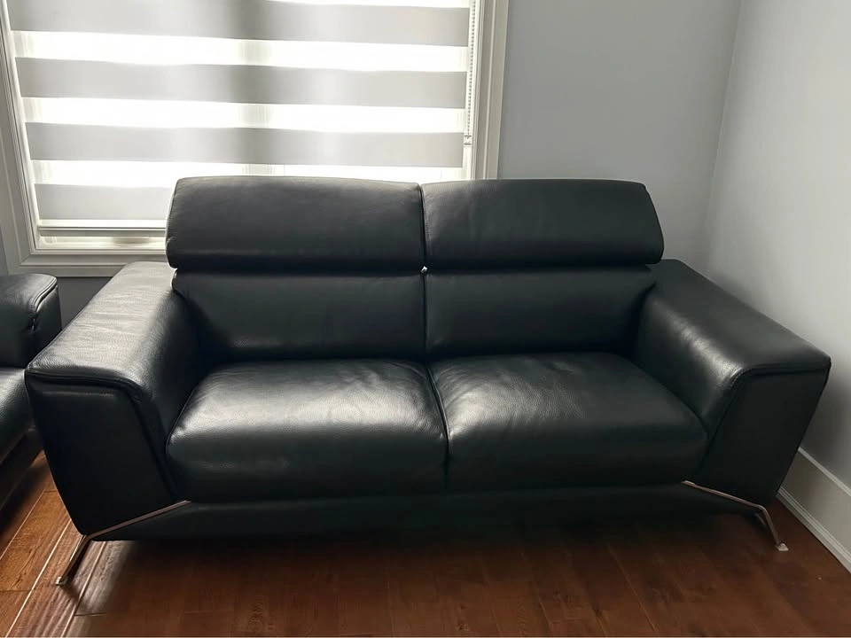 Real leather couch available in black - top-grain leather. Selling to make more space in my living room. The couch is super comfortable and durable.