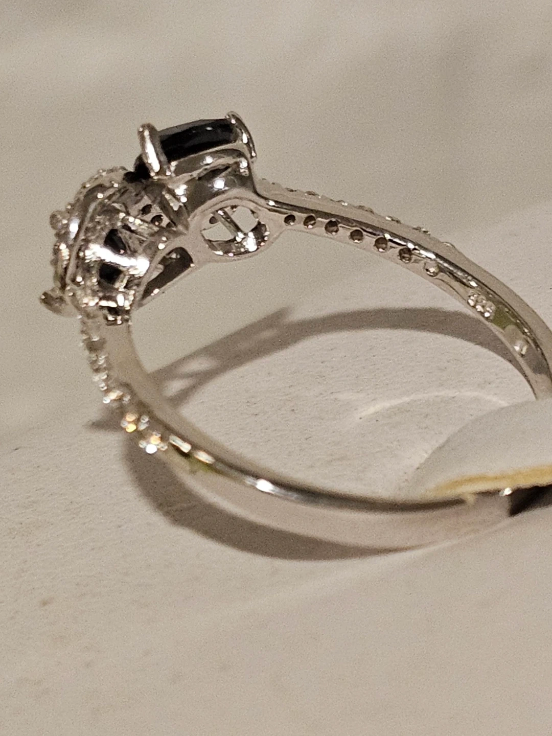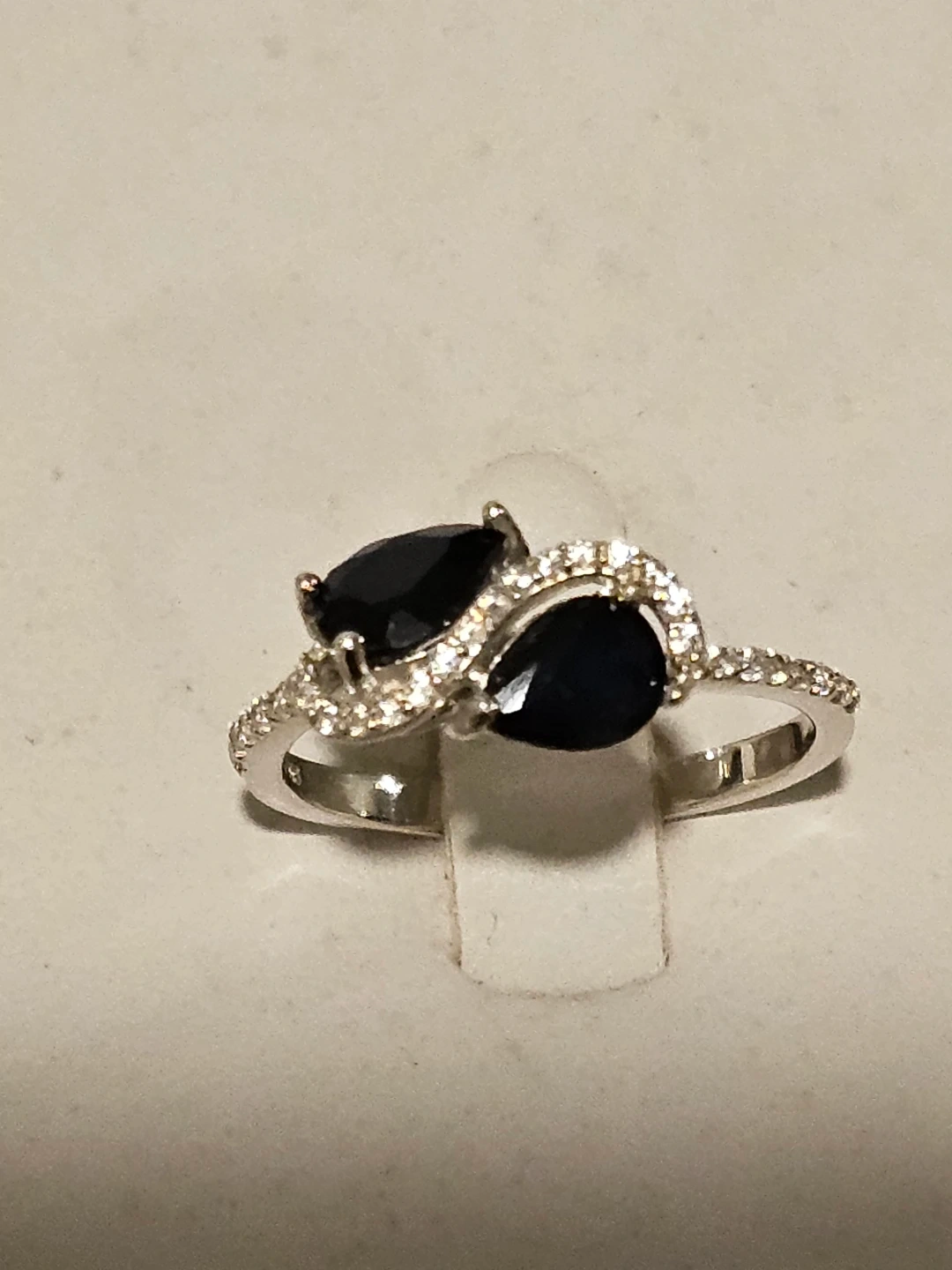 Sterling Silver Pear Cut Sapphire and Simulated Diamond Ring
