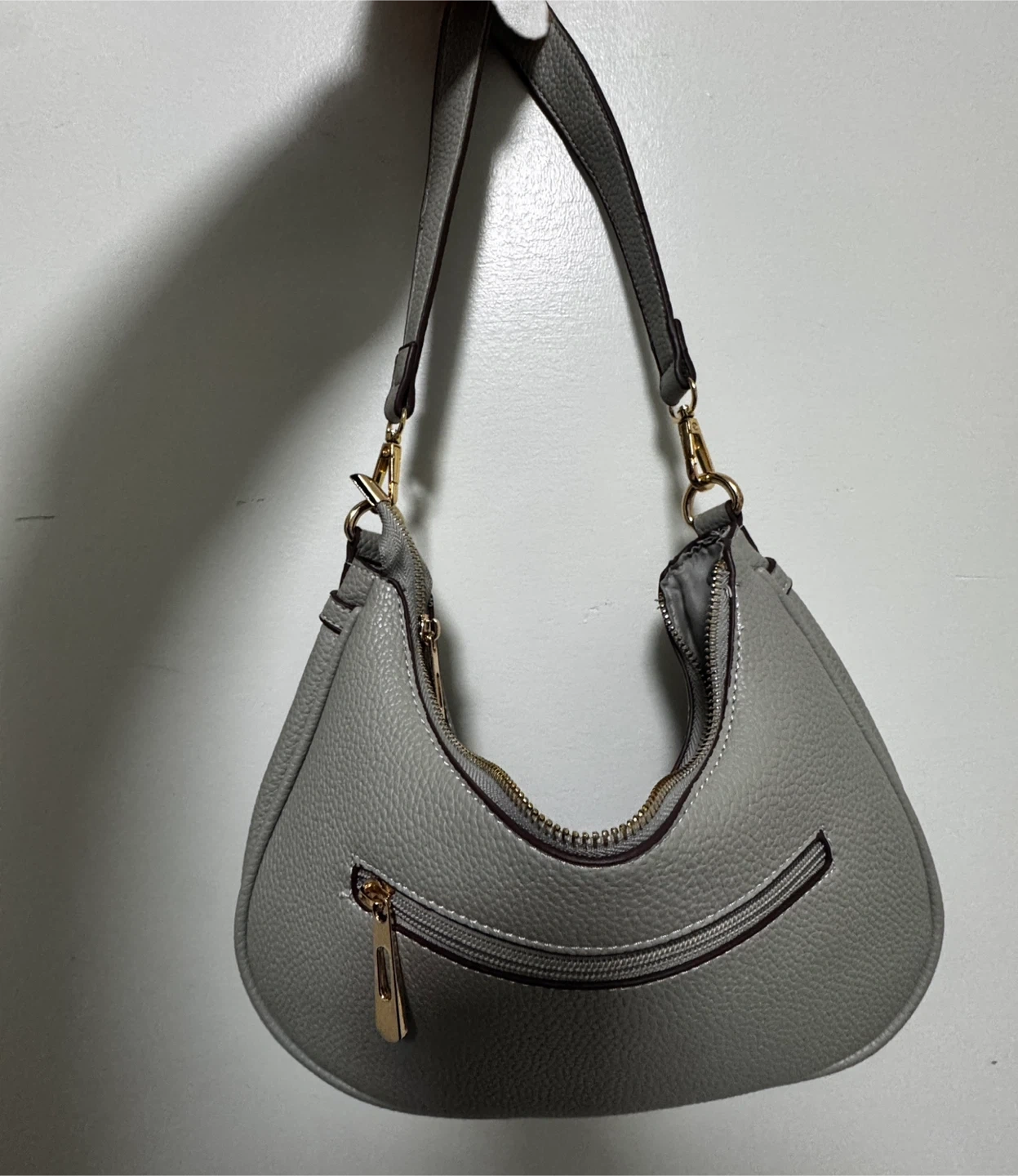 Gray Hobo Shoulder Bag with Adjustable Strap