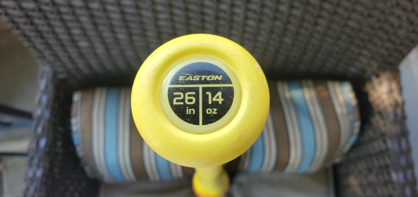 This is an Easton Hype Fire baseball bat. It's a drop 12 model, measuring 26 inches and weighing 14 ounces. The barrel diameter is 2 3/4 inches. It's engineered by Easton Advanced Labs.