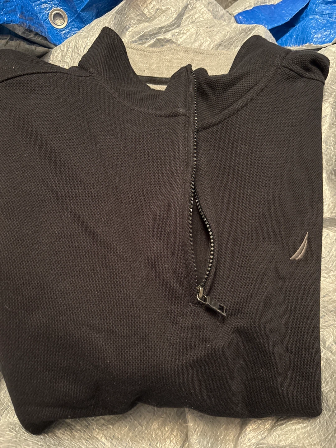 Nautica men's long sleeves quarter zip pullover in black. Size is XL. It's a comfortable and casual option for everyday wear.