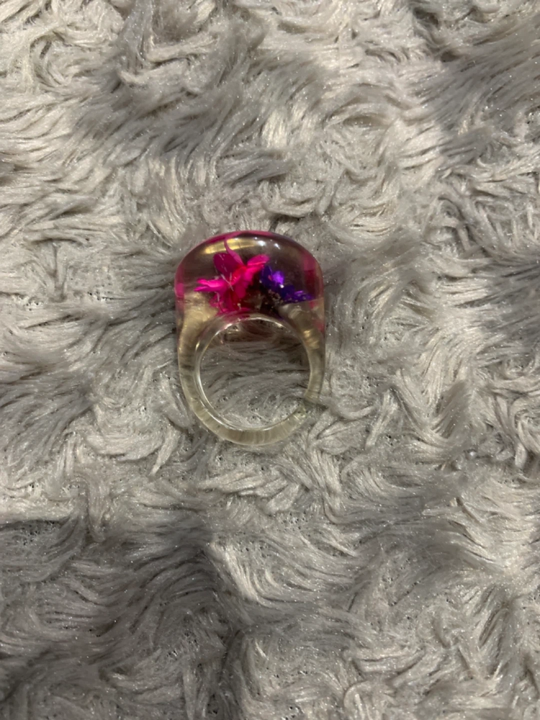 Resin Ring with Pink and Purple Flowers