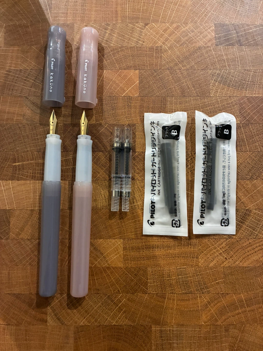 Selling two pilot kakuno fountain pens from the madoromi series as a bundle in great condition. Both come with the fine nib, CON-40 convertor and pilot black cartridge. Perfect for the fountain pen beginner or collector. Original packaging not included.