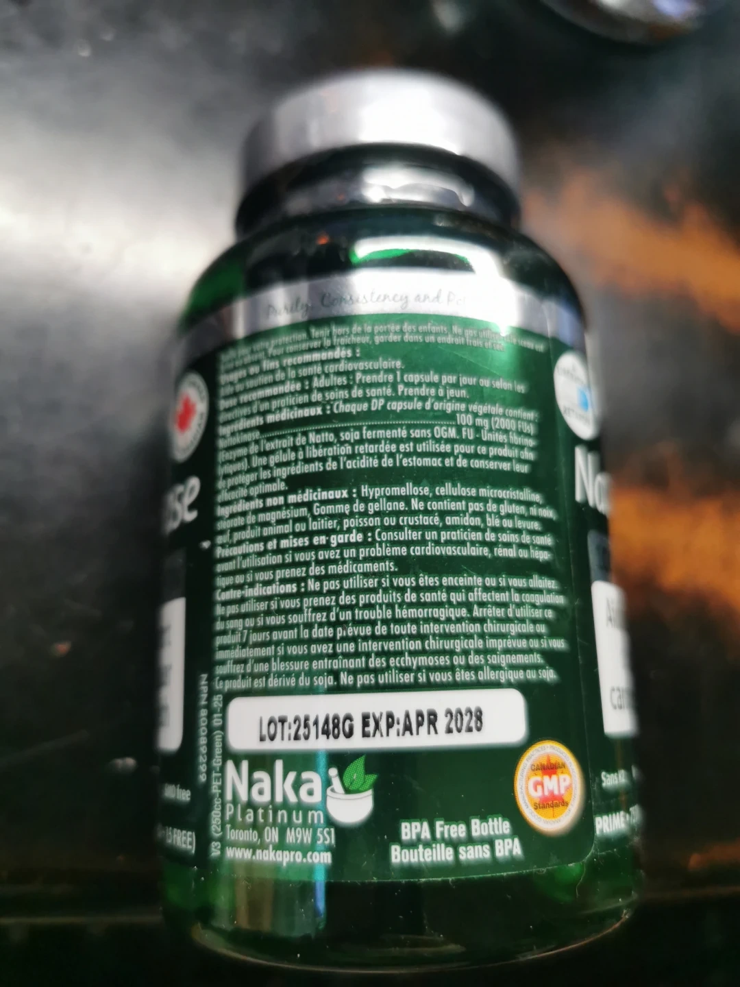 This Naka Platinum Nattokinase supplement comes in 75 veggie caps. It's formulated with 100 mg and 2000 FUs to help support cardiovascular system health. The product is vegetarian, gluten-free, and GMO-free.