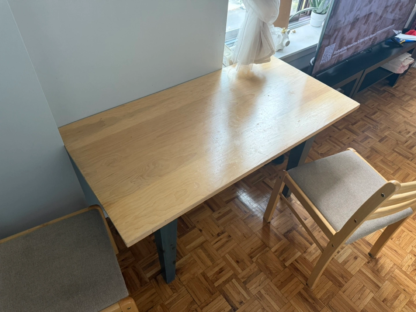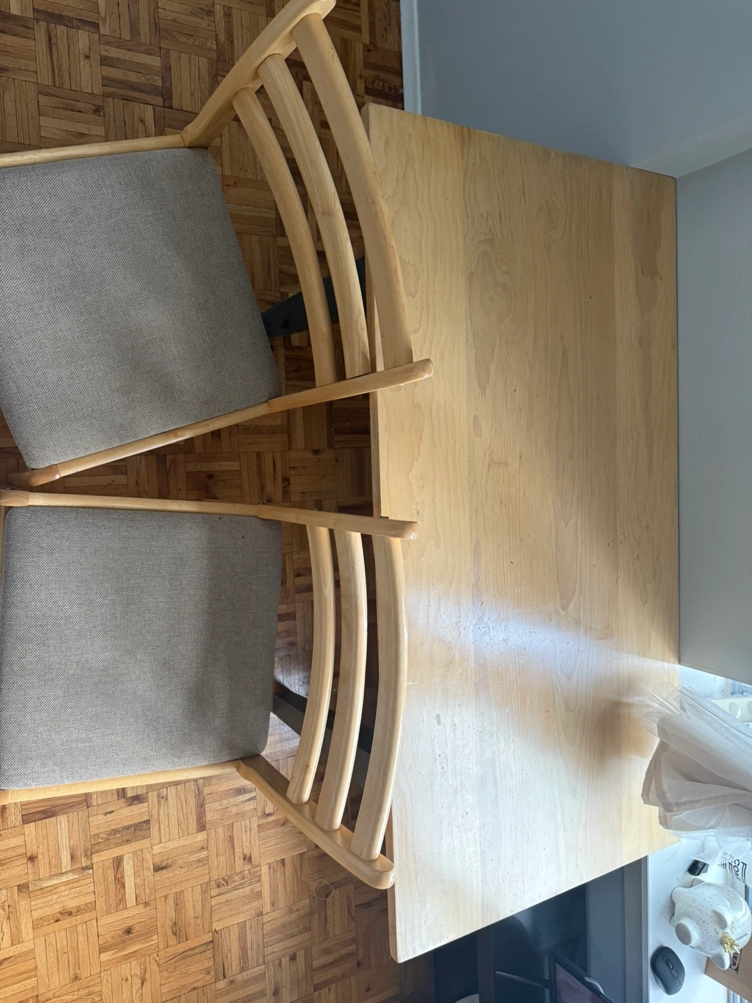 Selling a wood dining room table with matching chairs. Good for starting out. Some dents and scratches to the top but it doesn’t look terrible. I can send extra pictures.