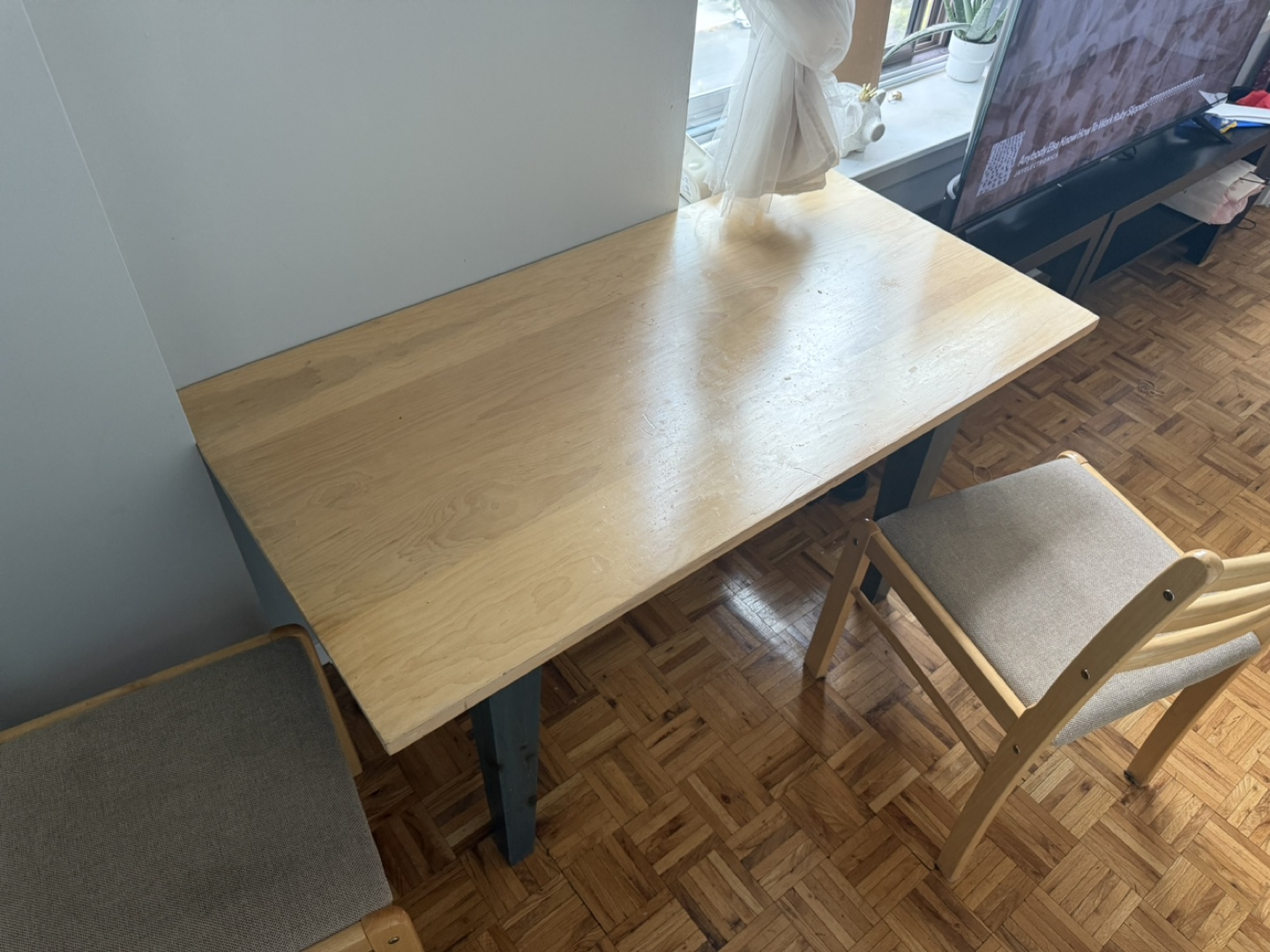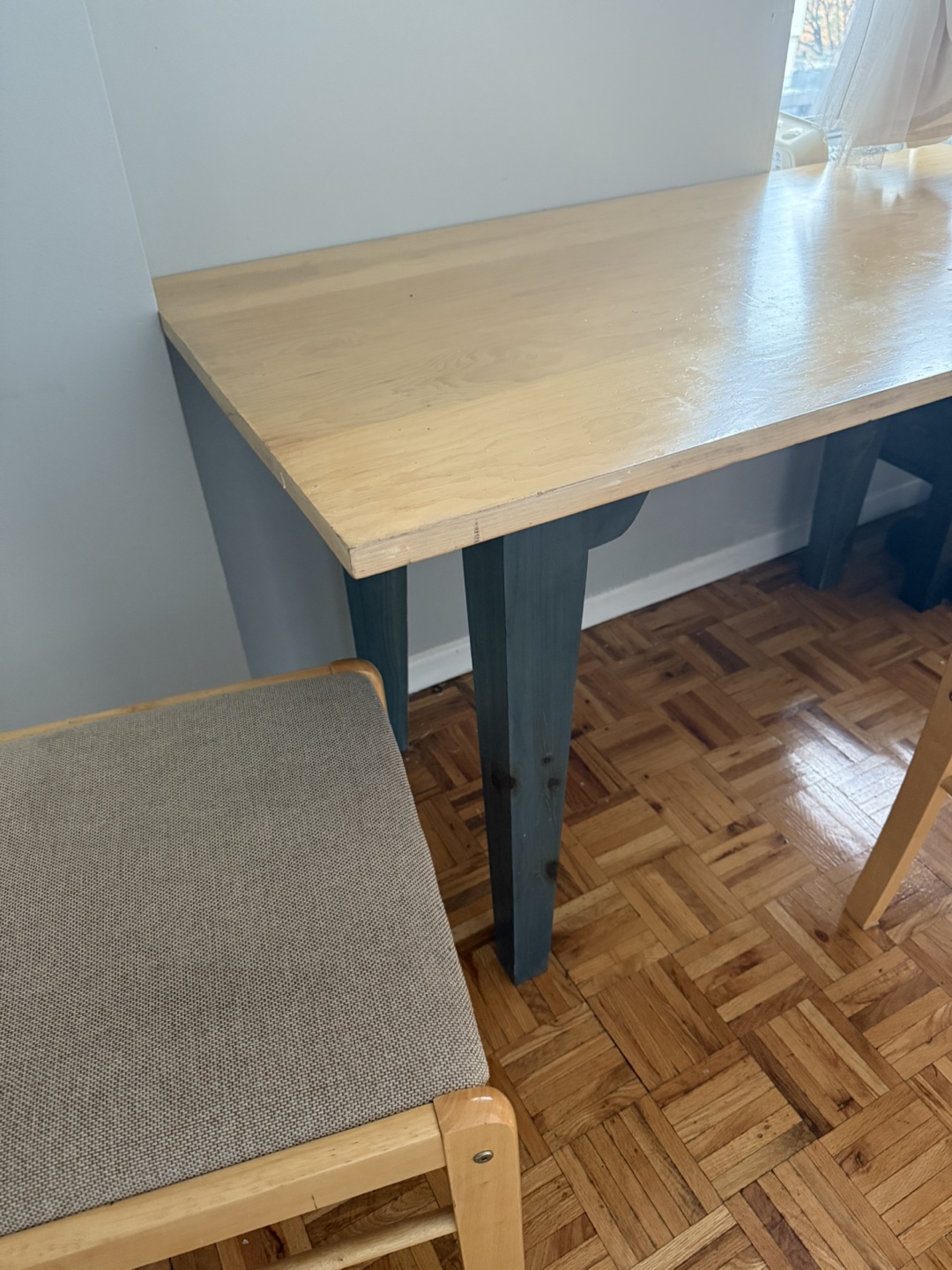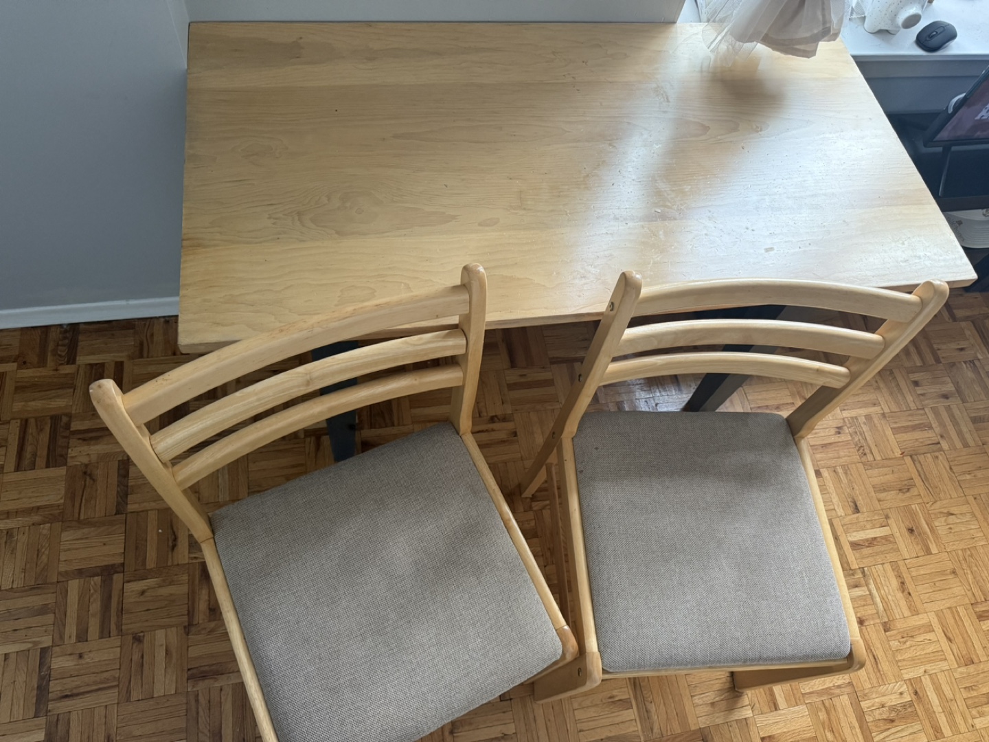 Selling a wood dining room table with matching chairs. Good for starting out. Some dents and scratches to the top but it doesn’t look terrible. I can send extra pictures.