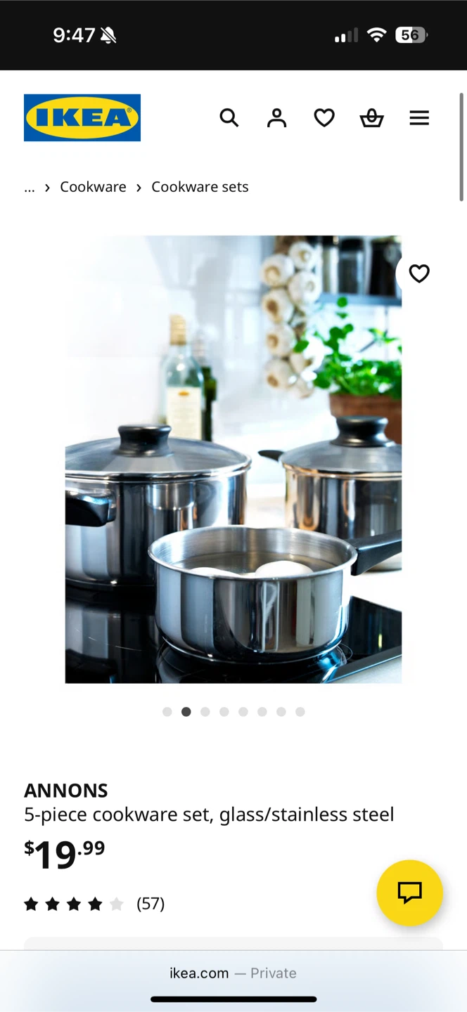 1 / 41 / 4Buy & Sell5-Piece Cookware Set + Knife Set w/ knife block5-Piece Cookware Set + Knife Set w/ knife block$15In original package, brand new. Knife set $20 Stainless steel Cookwear set $15 Or take both for $25ConditionNewWHERE TO MEETCheck LocationView MapSELLERverifiedEllaRenfrew Collingwood882 reviews2 chats·0 favorites·25 viewsSEND CHAT TO SELLERHi Ella! I’m interested in your listing.Hi Ella! I’m interested in your listing.Get the Karrot app to chatSign In to chat