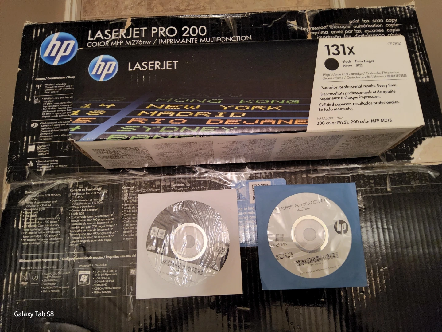 This is an HP LaserJet Pro 200 Color MFP M276nw printer. It's a multifunction colour laser printer. Includes original box and software CDs. Used for not even one year.