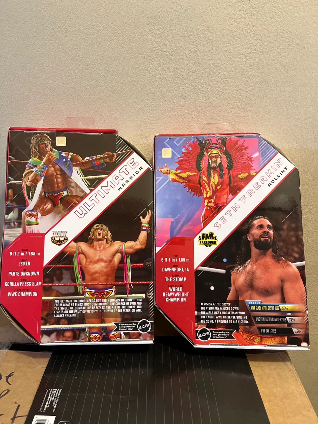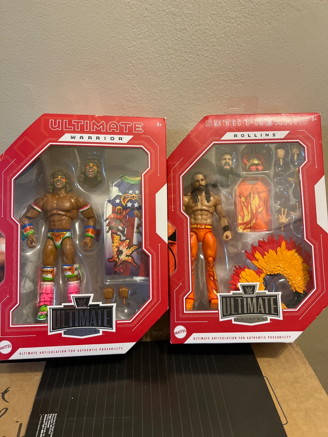 $50 both….This set includes two WWE Ultimate Edition action figures: Ultimate Warrior and Seth Rollins. Both figures come with accessories for dynamic posing and play. Figures are articulated for authentic articulation.