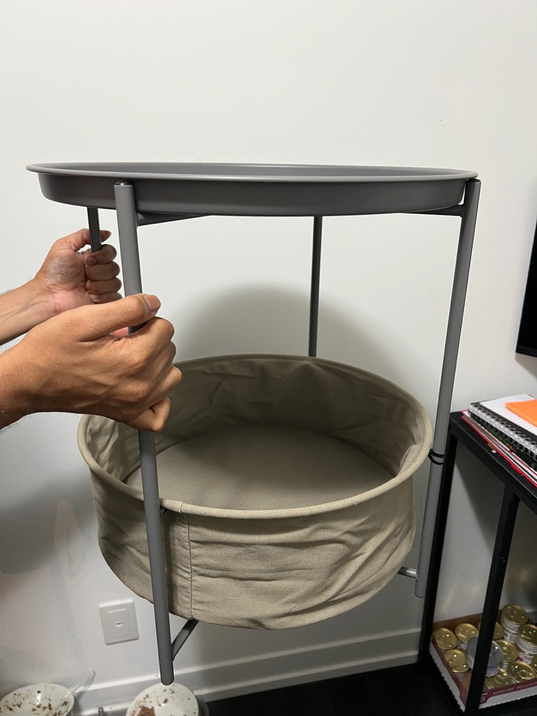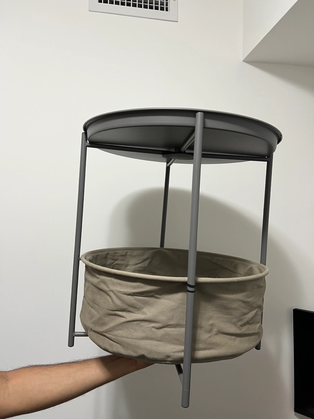 Looking to sell this handy side table. It's in great shape and perfect for adding a bit of storage to any room. The neutral colour fits in with any decor. It's lightweight and easy to move around too!