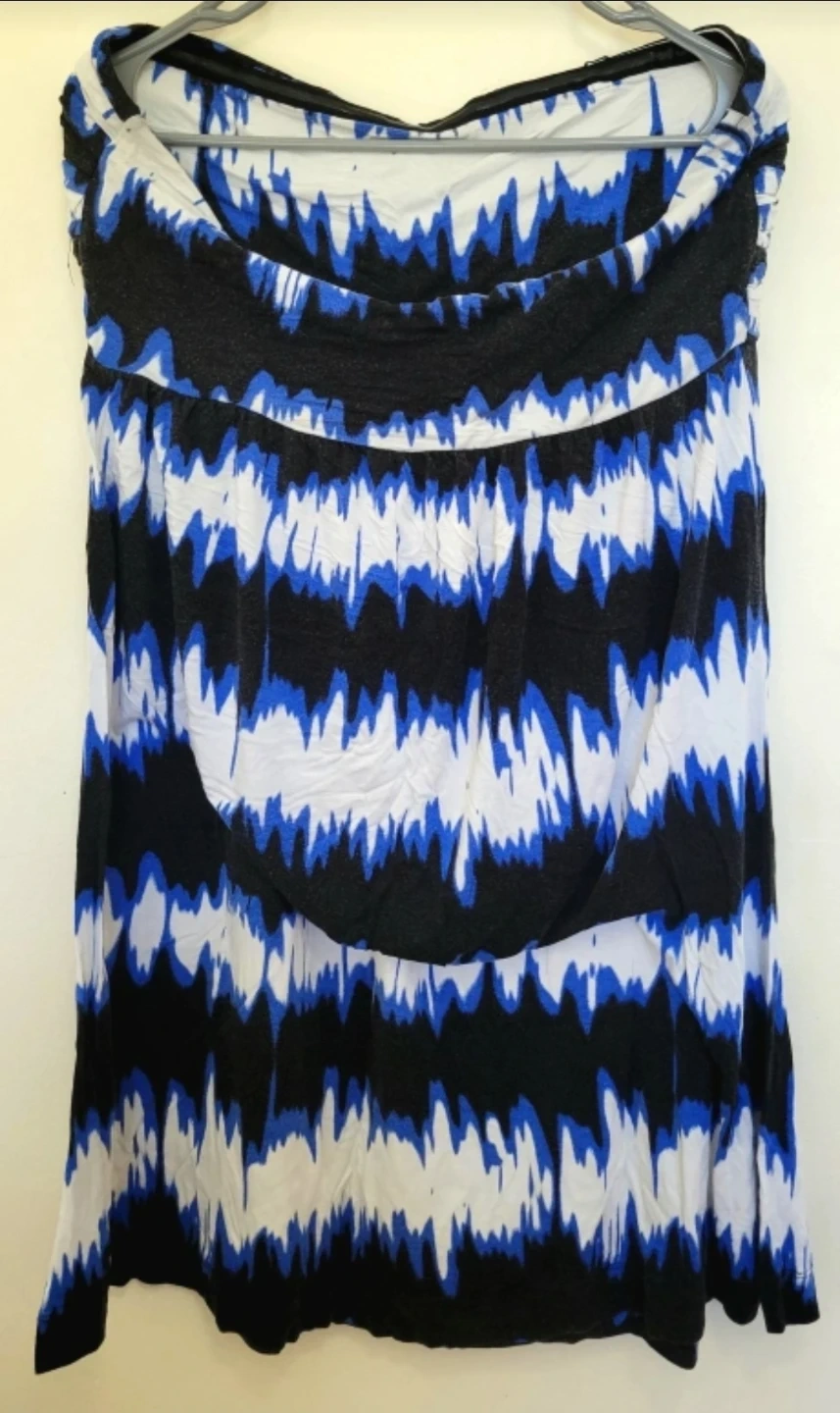 Blue & Black Strapless Dress - Size L