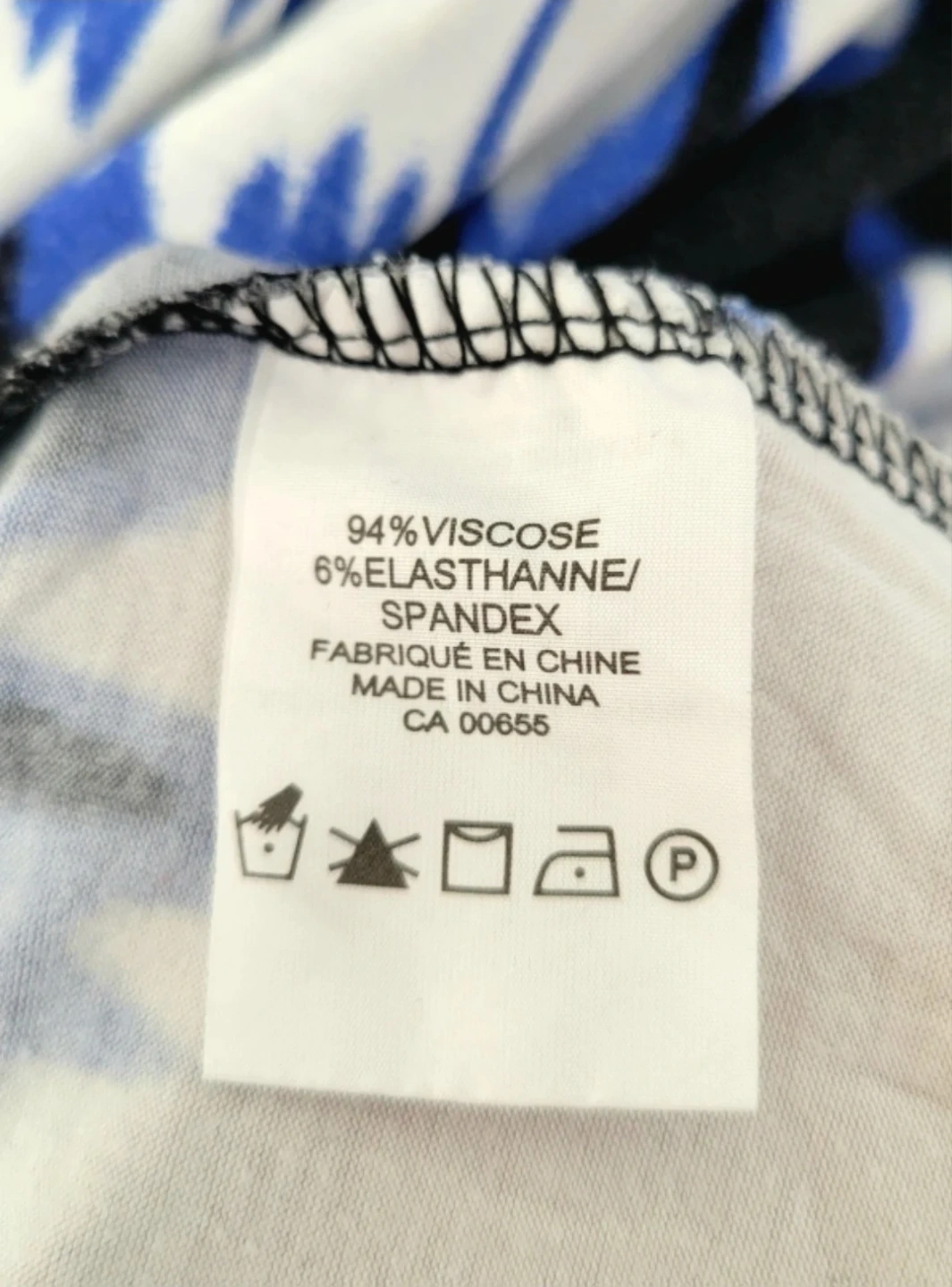 Strapless maxi dress with a bold blue, white, and black abstract print. It's made from a comfortable blend of 94% Viscose and 6% Elastane/Spandex for a good drape. This dress is perfect for warm weather occasions. It's great for a casual day out or a summer evening.