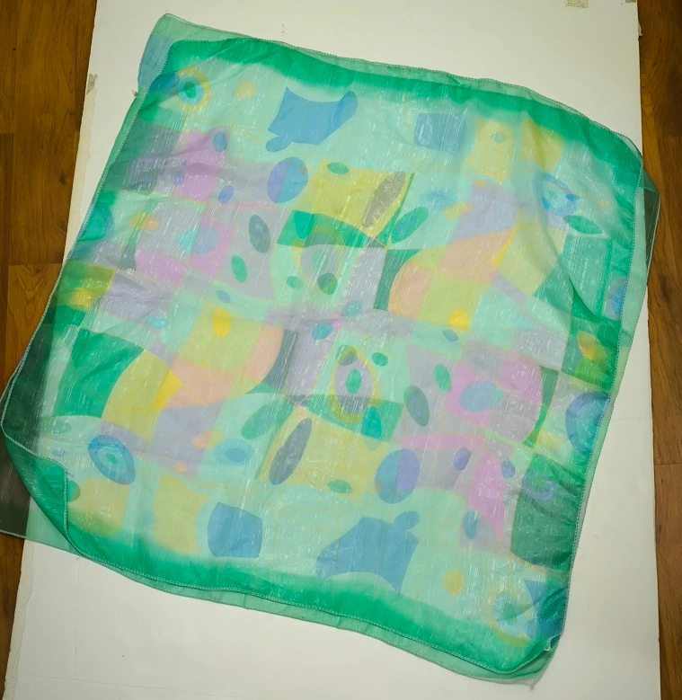 Brand new two vintage square green scarf with abstract print. The scarf is sheer and has a silky feel.