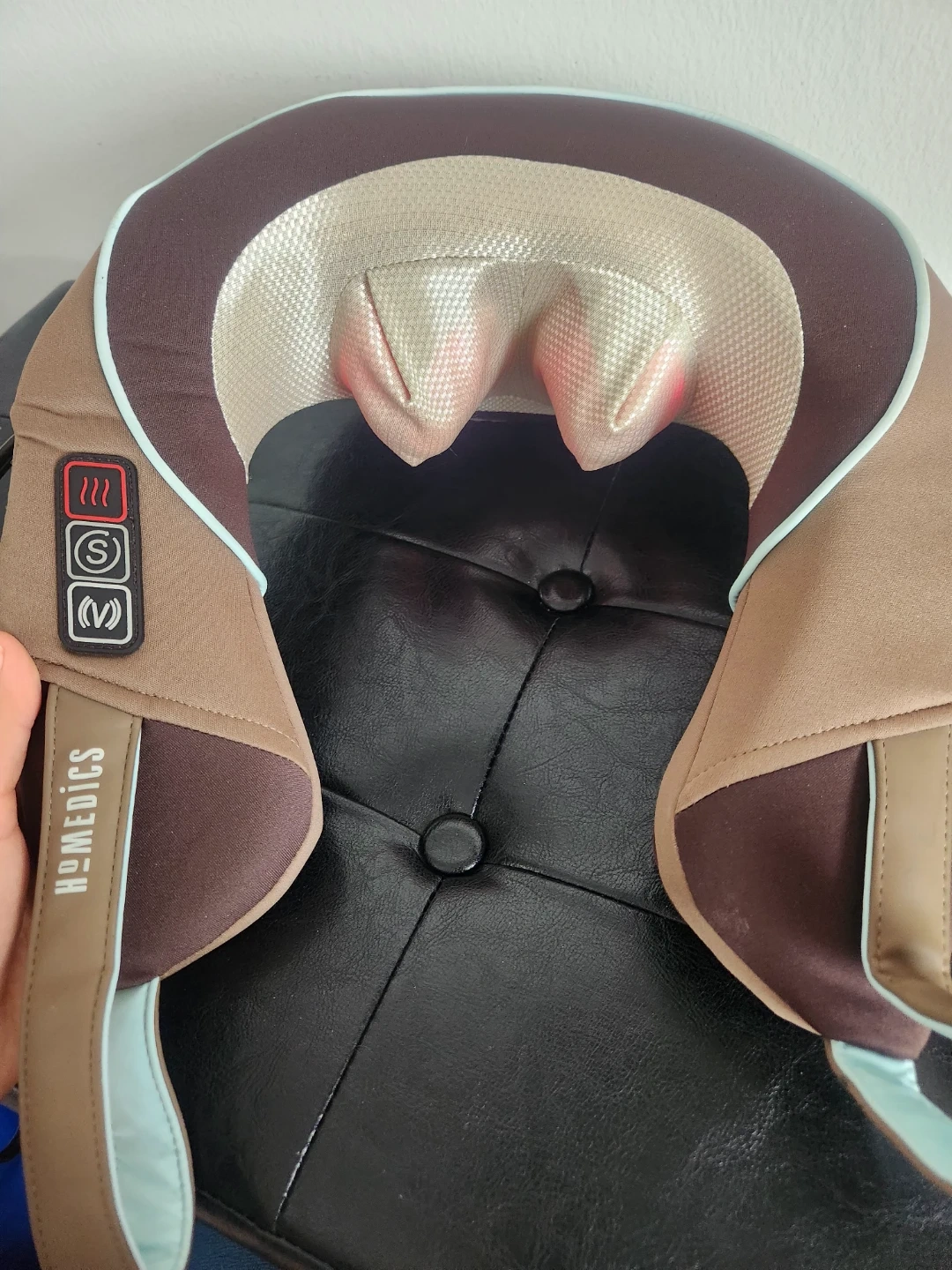 This HoMedics neck massager offers soothing relief. It has a heat function and multiple speed settings for a customized experience. Great for relaxing after a long day!