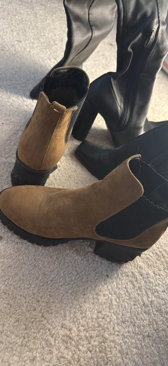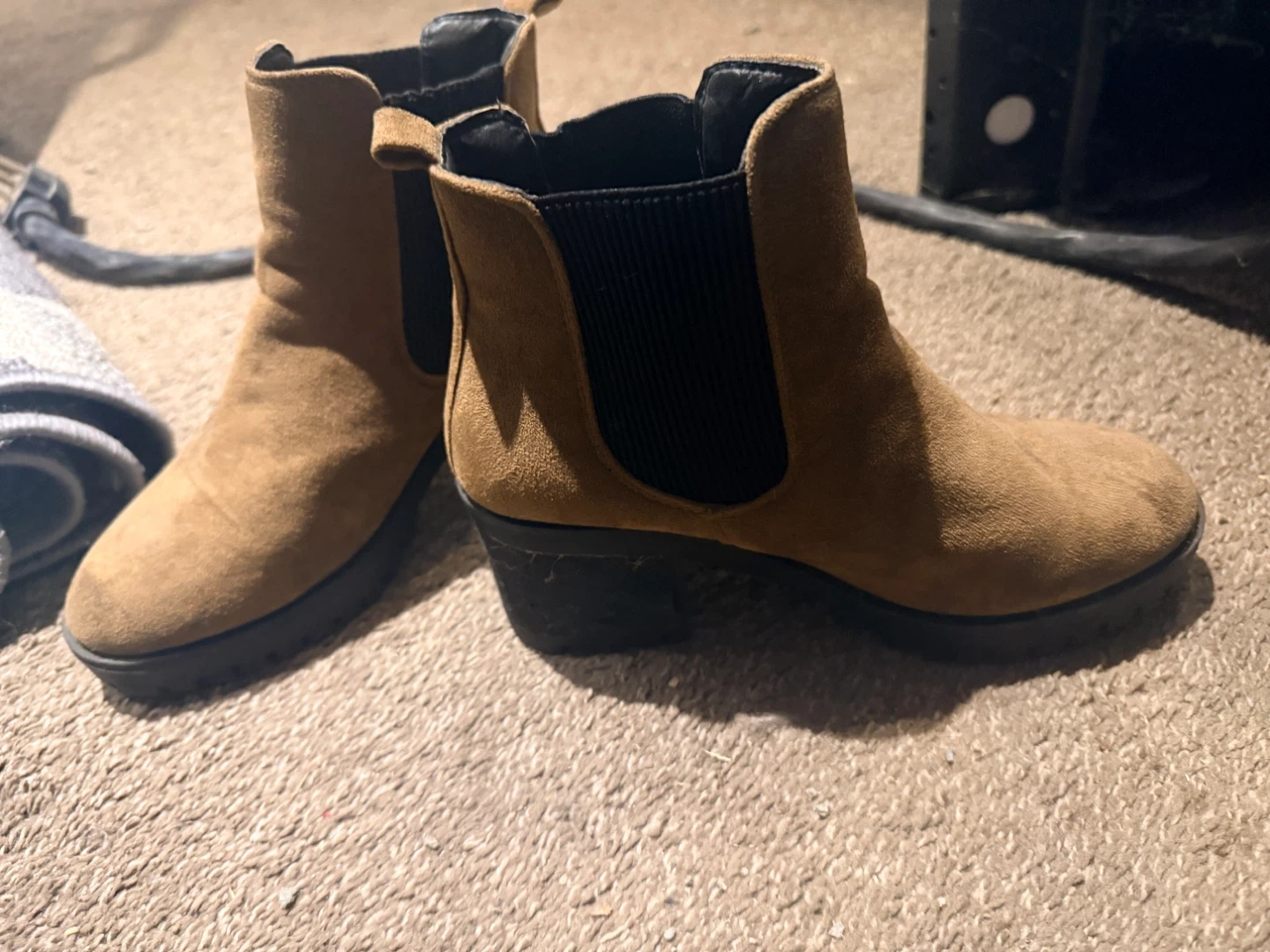 Buy & SellTan Suede Chelsea BootsTan Suede Chelsea Boots$7These tan suede Chelsea boots feature elastic side panels for easy wear. They have a stacked block heel and a round toe. Perfect for everyday wear!ConditionOkaySize7WHERE TO MEETLong BranchView MapSELLERverifiedShaya CLong Branch1337 reviews0 chats·1 favorites·19 viewsSEND CHAT TO SELLERHi Shaya C! I’m interested in your listing.Hi Shaya C! I’m interested in your listing.Get the Karrot app to chatSign In to chat