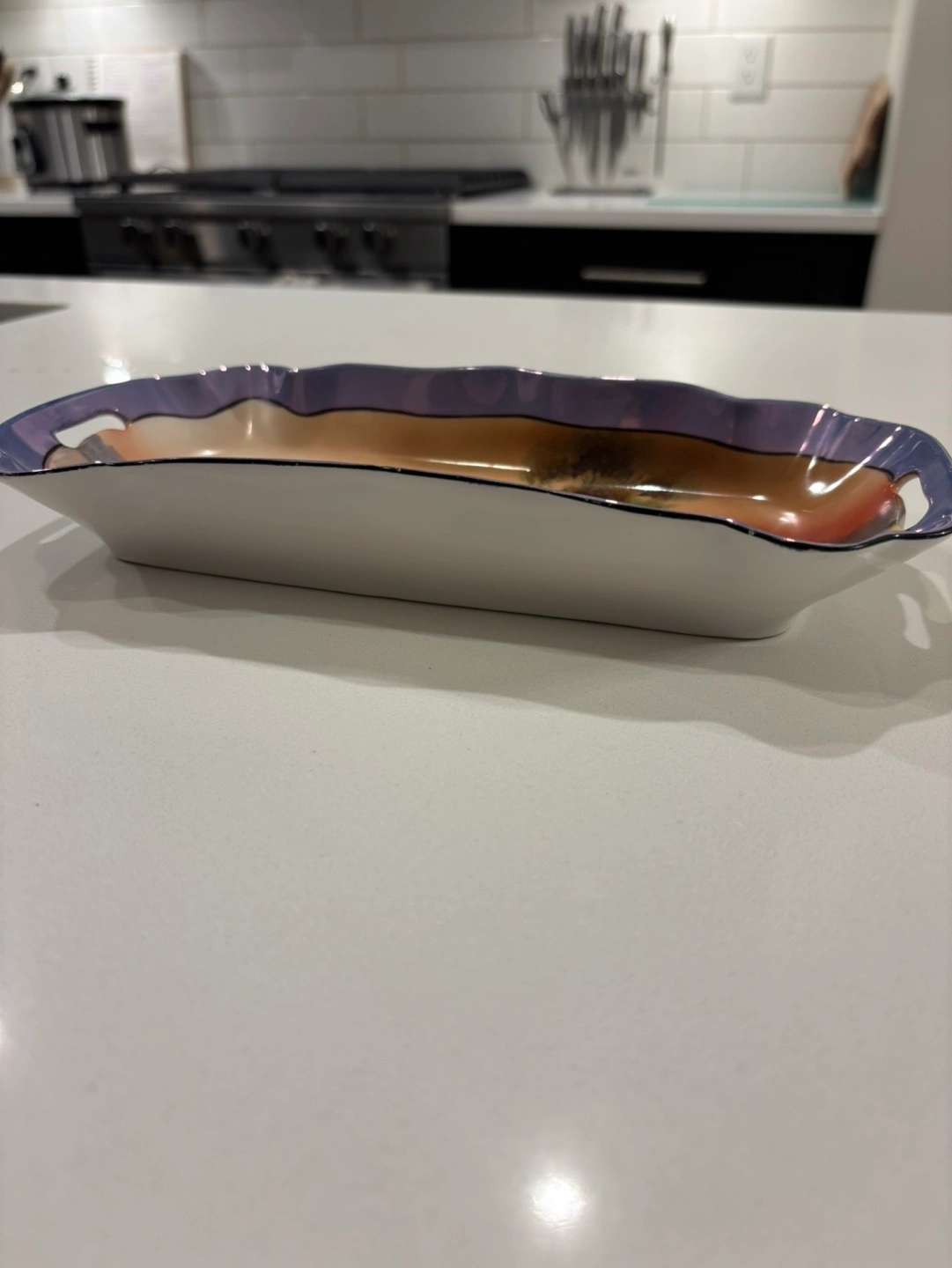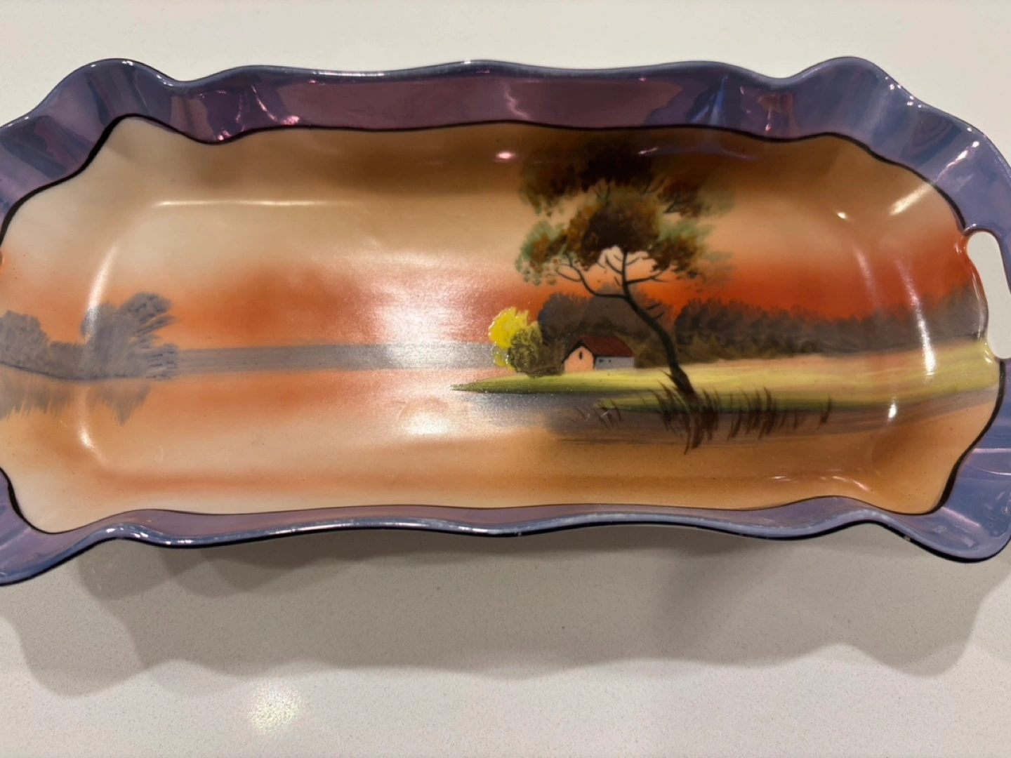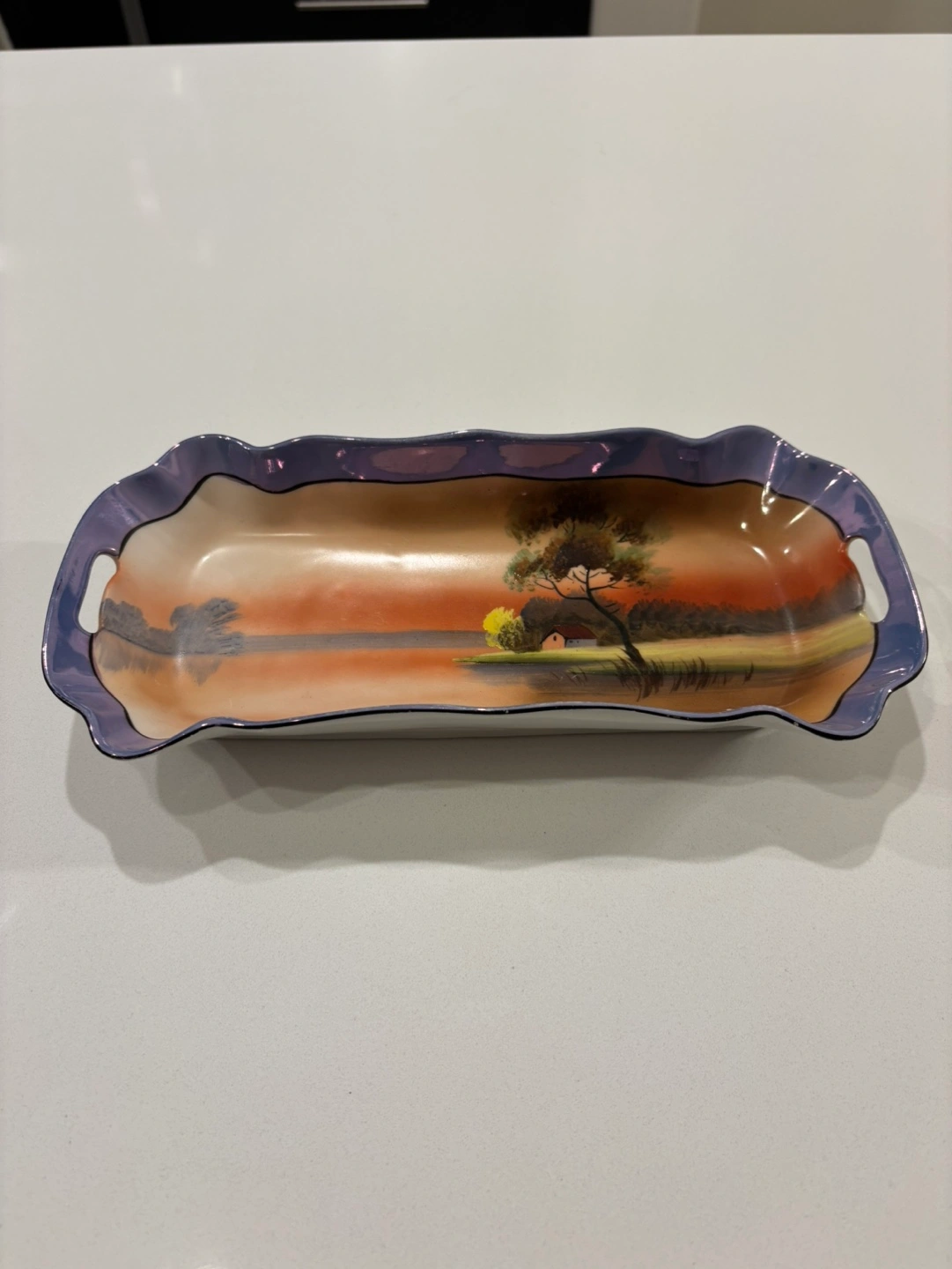 Vintage Noritake Blue Lusterware Hand Painted Tray For Sale. Excellent - like new condition. No chips or cracks. 10.25” L x 4.5” W x 1.5” H. East Regina pick up. Listed on other sites.