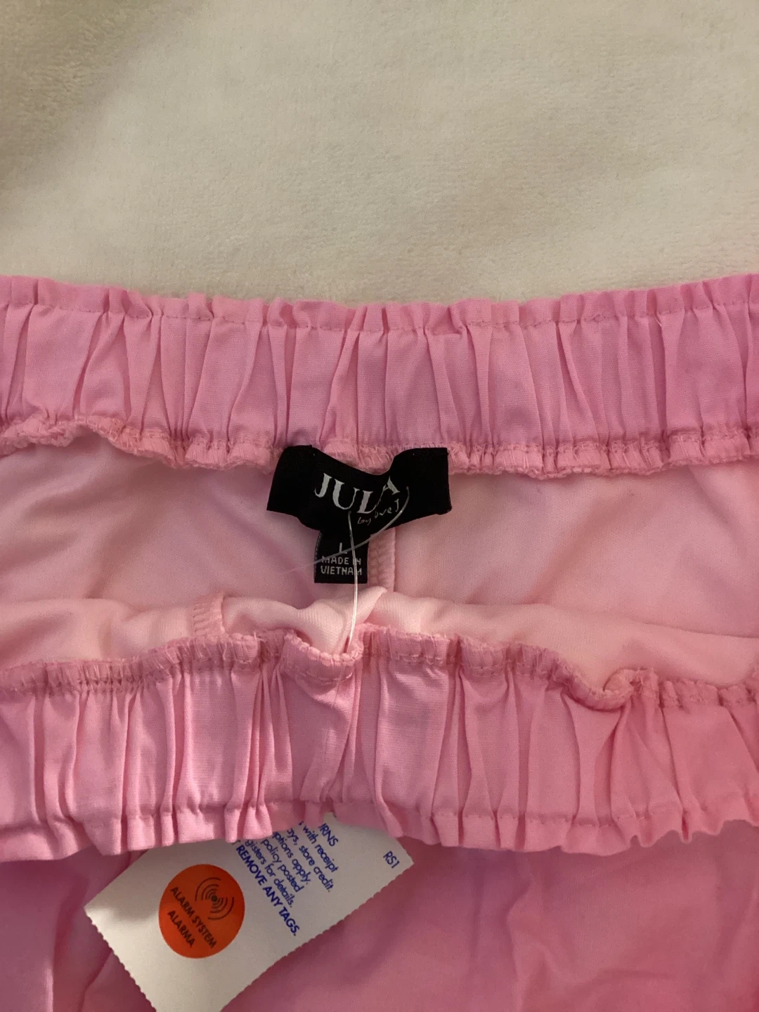 This pink JULIA skirt is a size L. It's made from a lightweight fabric. The balloon style makes it a fun addition to any casual outfit!