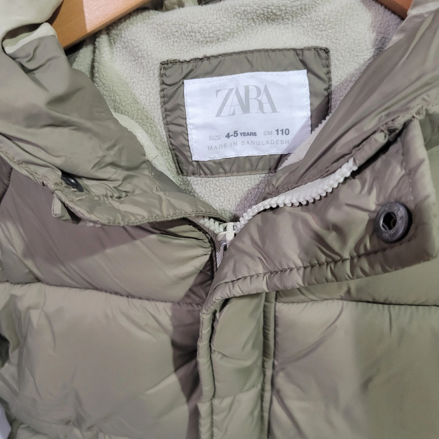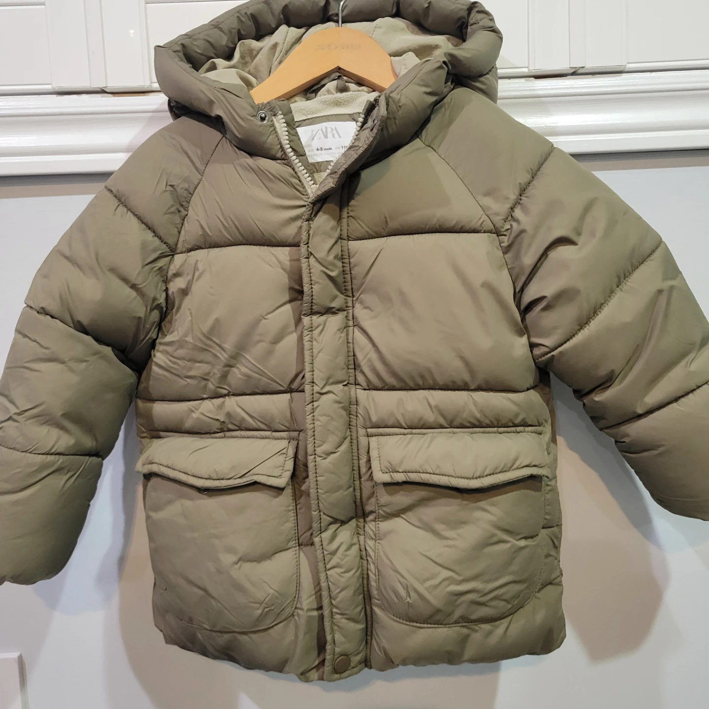 This Zara puffer jacket is designed for kids, in a size 4-5 years or 110 cm. It's been worn a few times and features a cozy, insulated design with a hood. Perfect for keeping little ones warm during colder weather!