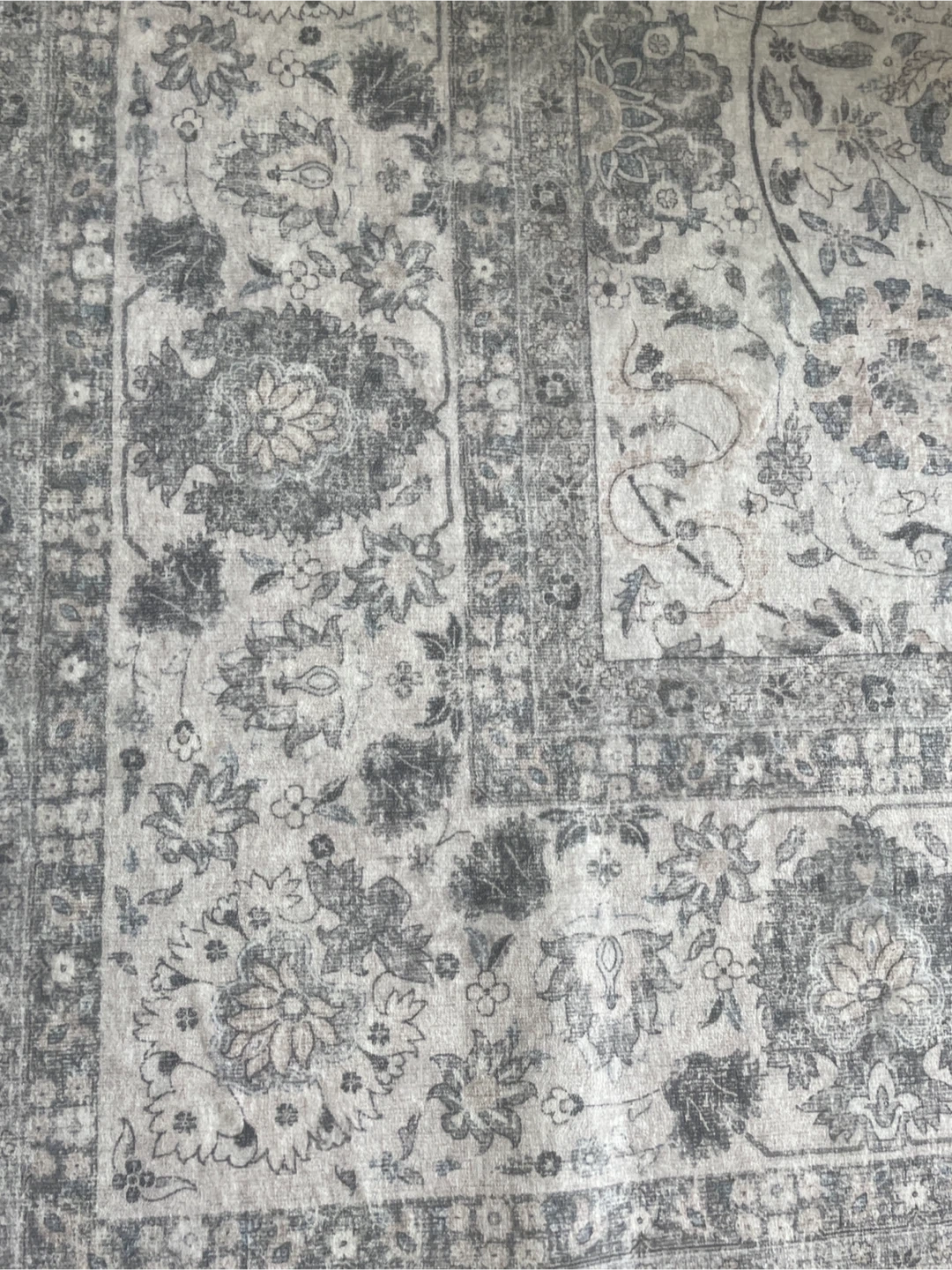 This new floral medallion area rug features a vintage-inspired design with intricate floral patterns. Its neutral grey and cream colour palette complements many decor styles. This rug is a nice addition to a living room or bedroom. It's a great way to add warmth and texture to your space!