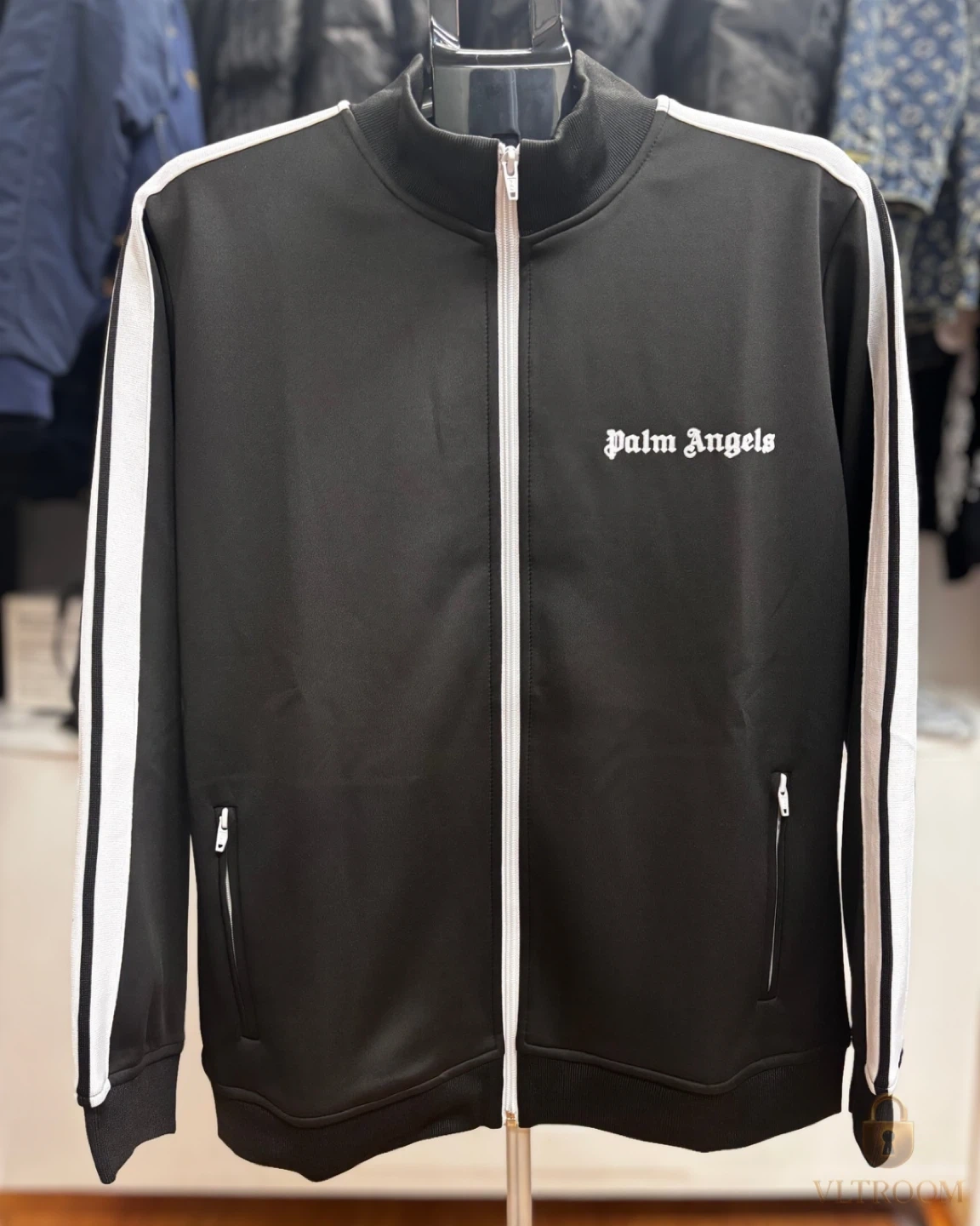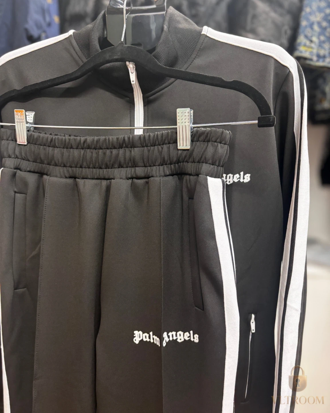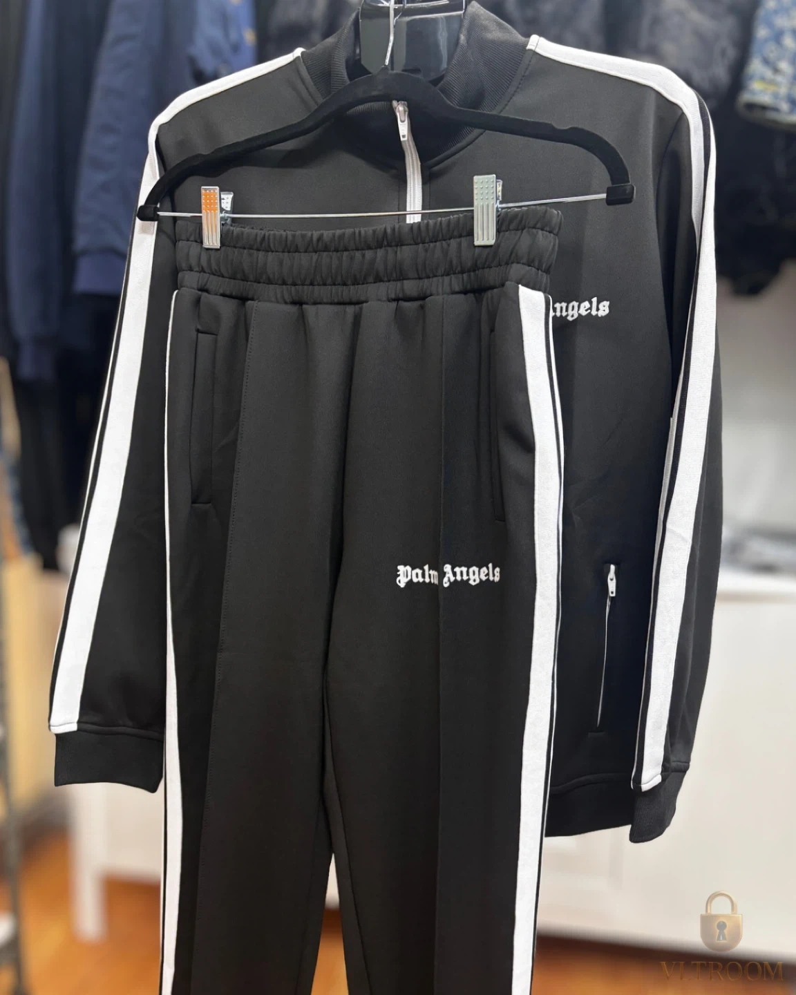 Clean, classic Palm Angels tracksuit in black with white side stripes.