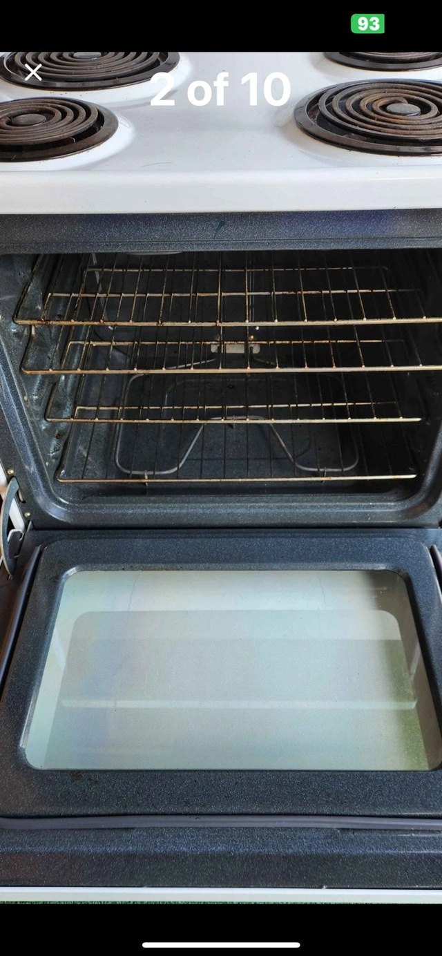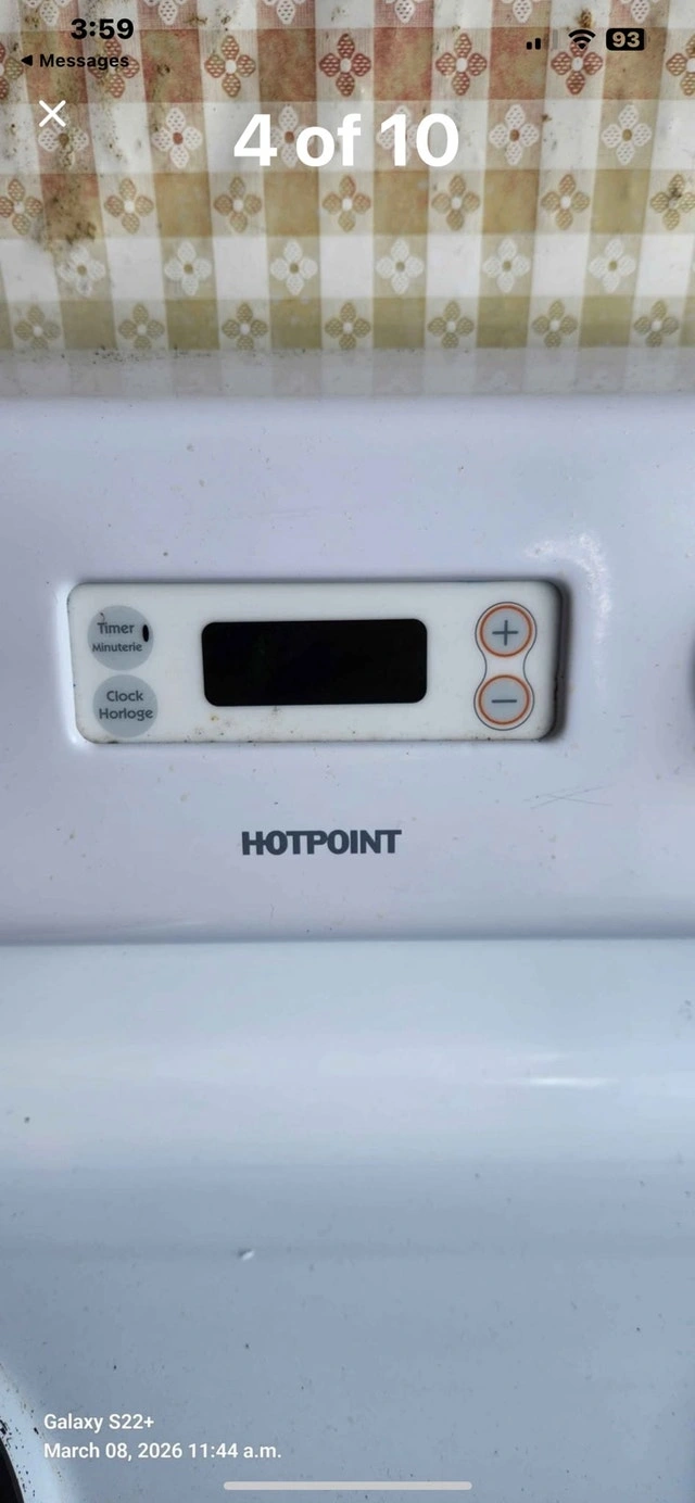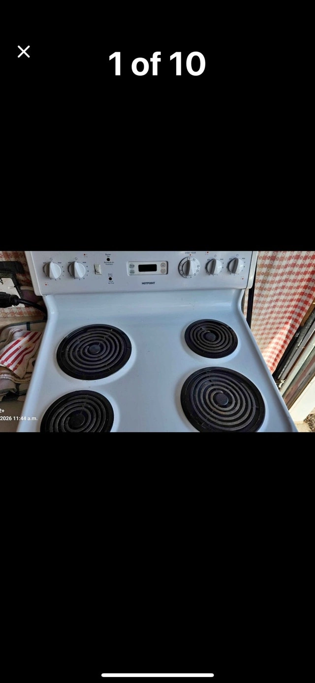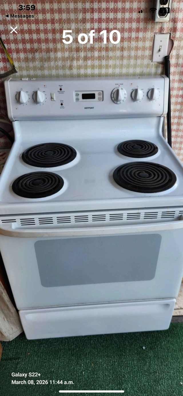 This Hotpoint stove features coil top elements and a digital clock. It is in fantastic condition. I can replace the right front element connector for you for the full asking price. Rarely used and in great condition. If the ad is up, the stove is available!
