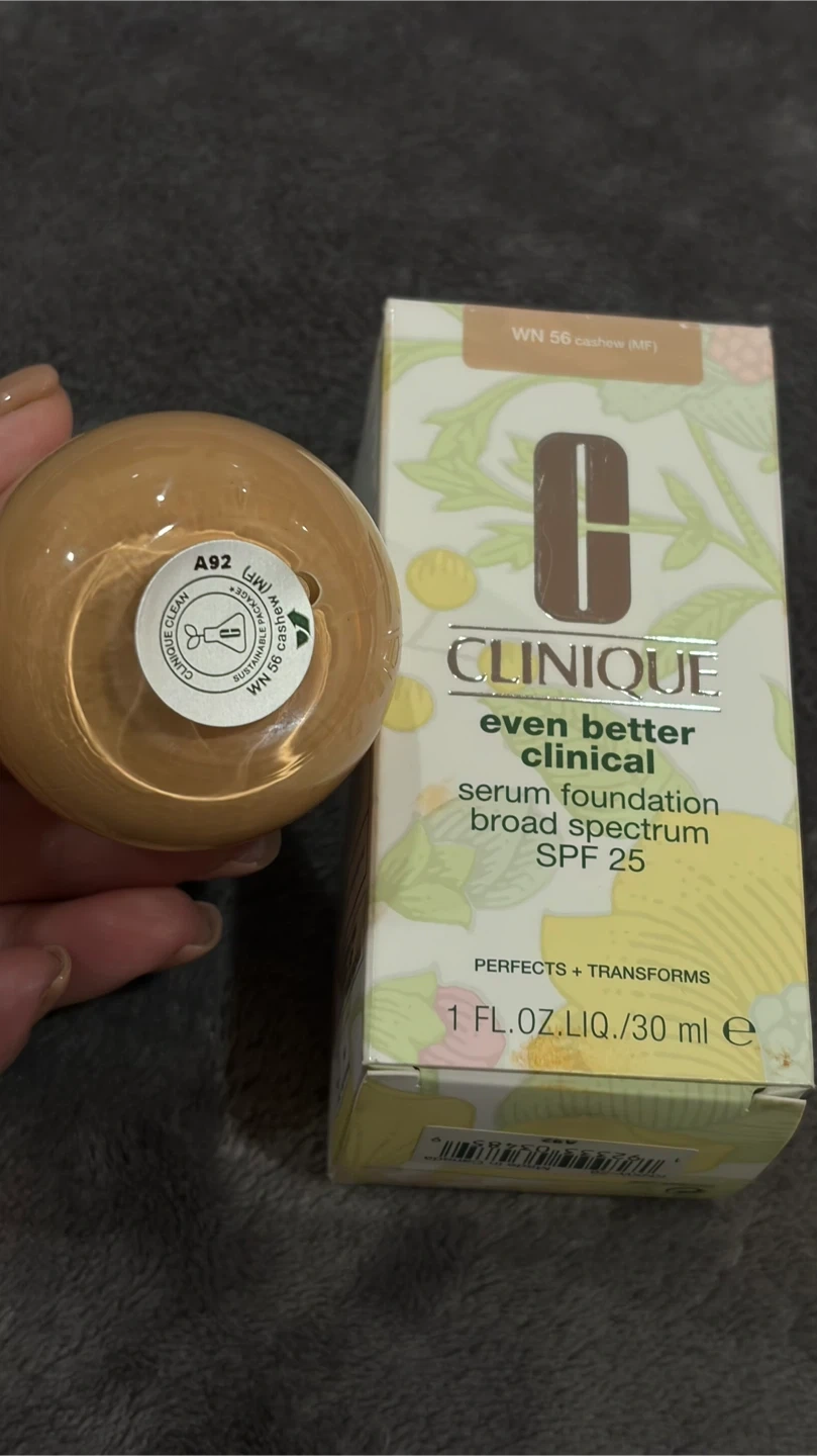 Clinique Even Better Clinical Serum Foundation in shade WN 56 Cashew. It's a broad-spectrum SPF 25 formula. This foundation comes in a 1 fl. oz. (30 ml) bottle. It's perfect for achieving a flawless complexion.