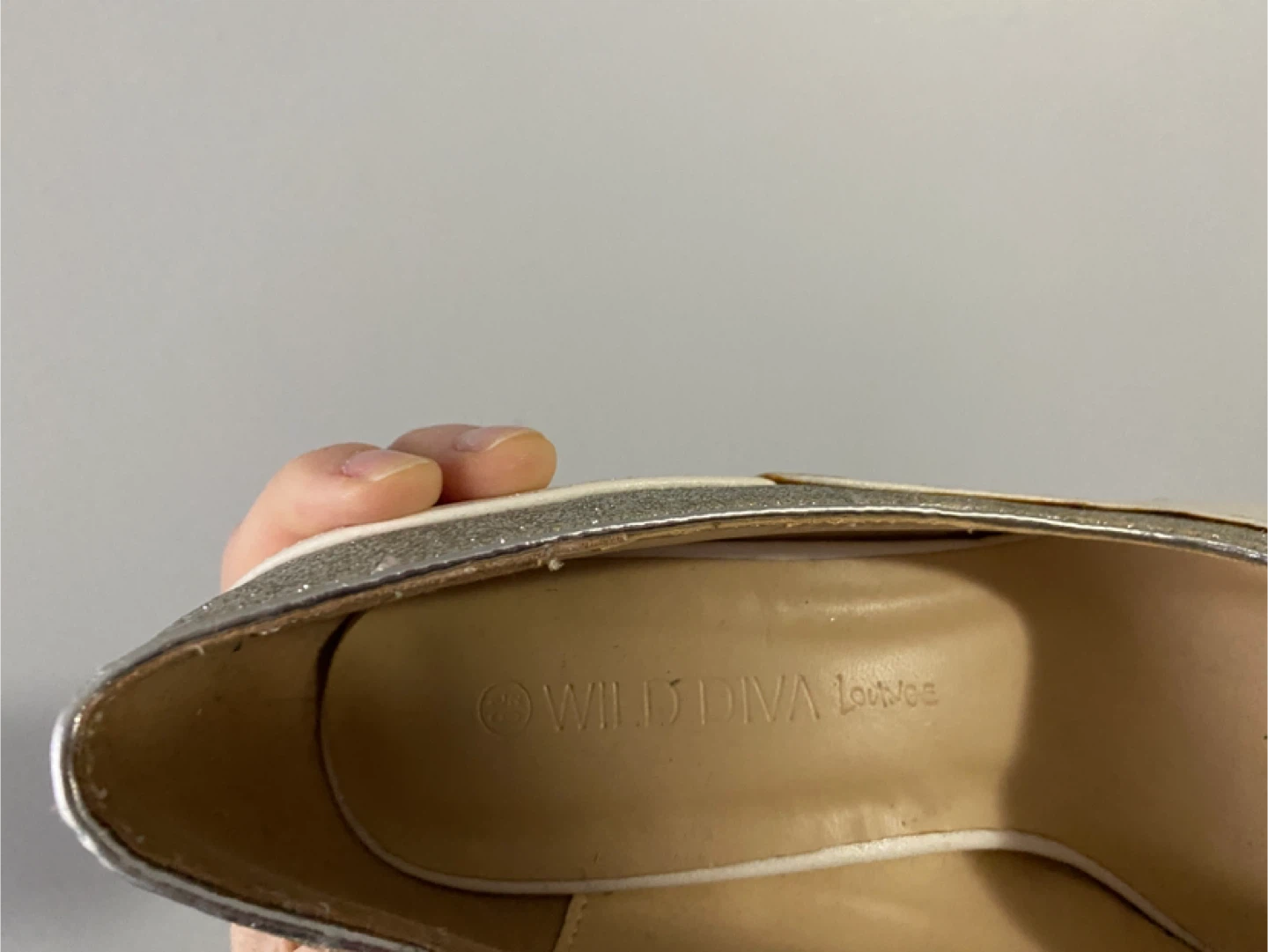 Stylish white stiletto heels from Wild Diva Lounge. They feature a chic glitter trim accent for a touch of sparkle. Perfect for dressing up any outfit!
