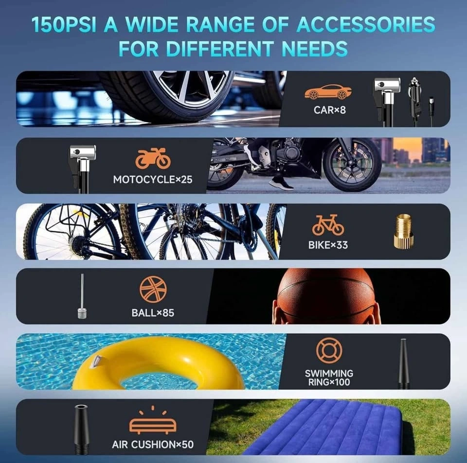 Portable Air Compressor - 150PSI Cordless Electric Inflator