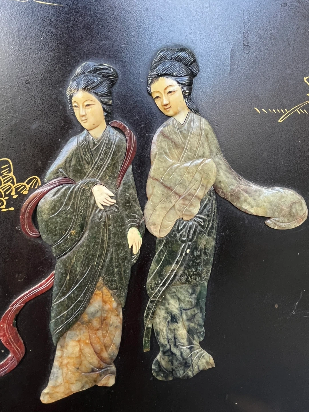 Large Black Lacquered Chinese Cabinet with Carved Stone Inlay