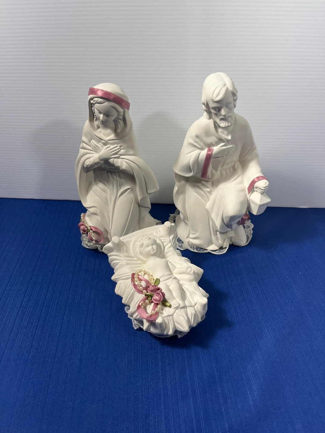 Vintage 1980s White Bisque Porcelain Nativity Set - Holy Family