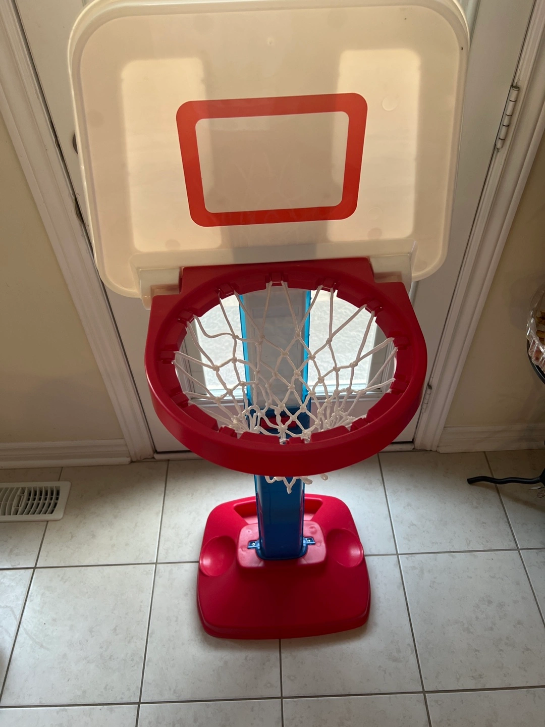 Selling a kids basketball hoop in red and blue! It's perfect for little ones who are just starting to learn the game. It's in good condition and ready for a new home