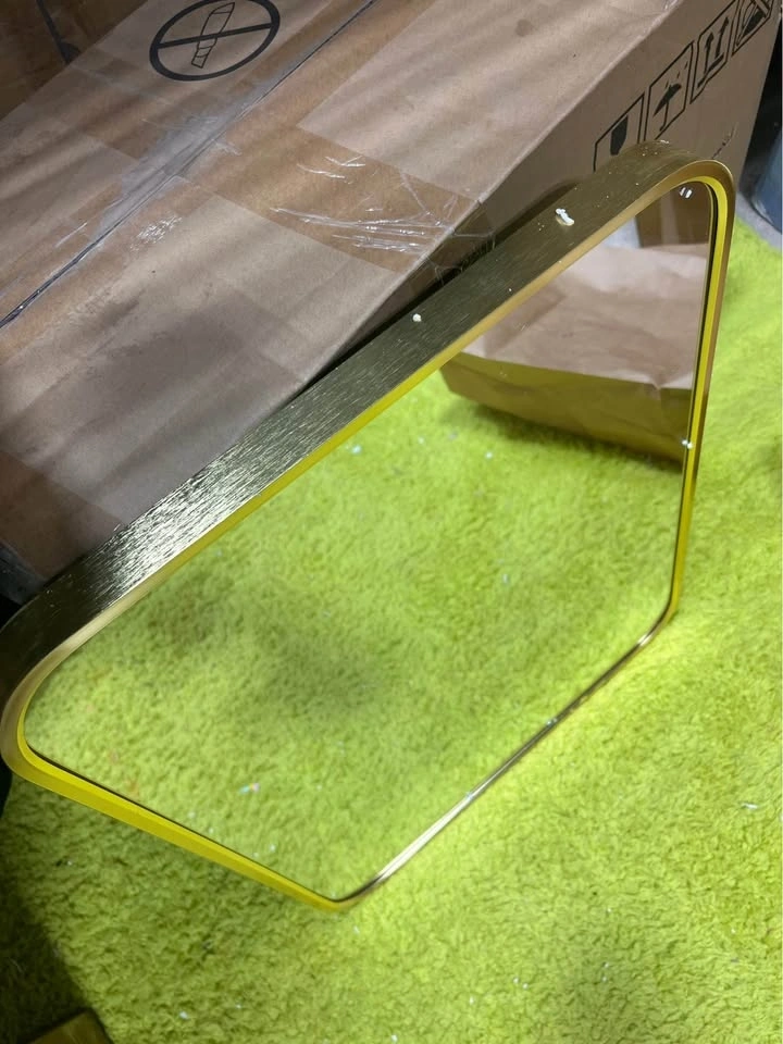 Elegant gold metal frame with a modern rounded design for a premium look. Perfect for your bathroom, entryway, or bedroom. Wall-mount ready with hardware included. Minimalist aesthetic that matches any home. Approx 50 cm x 40 cm with a slim depth for a clean wall fit. Condition is new/open box with no damage and includes mounting hardware. Cash or Interac/e-Transfer accepted. Pickup available at Kaladar Ave, Ottawa (Z3 Finds). Clean, curated products at better than retail pricing, ready to use. Limited pieces available!