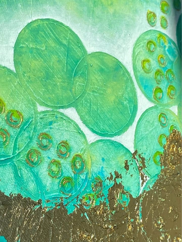Just a heads up, I don’t hold items without a deposit. The item goes to the first person who’s able to pick up! Need a shipping quote? Just message your postal code 🤗 Handmade Original Acrylic Painting on 24 x 24 x 1.5 inch gallery canvas. Octopus Bubbles | Inspiration:🐙 🫧 Aqua blues & greens, yellow, colourful. Medium: Modelling paste, gel paste, acrylic paint, gold leaf. Ready for pick up!