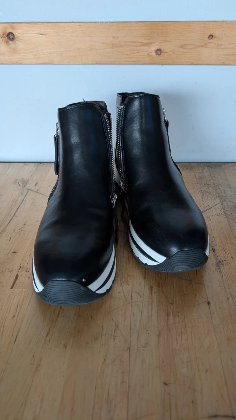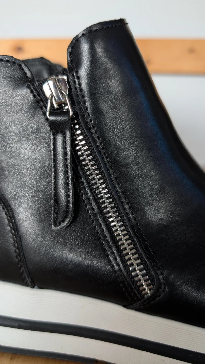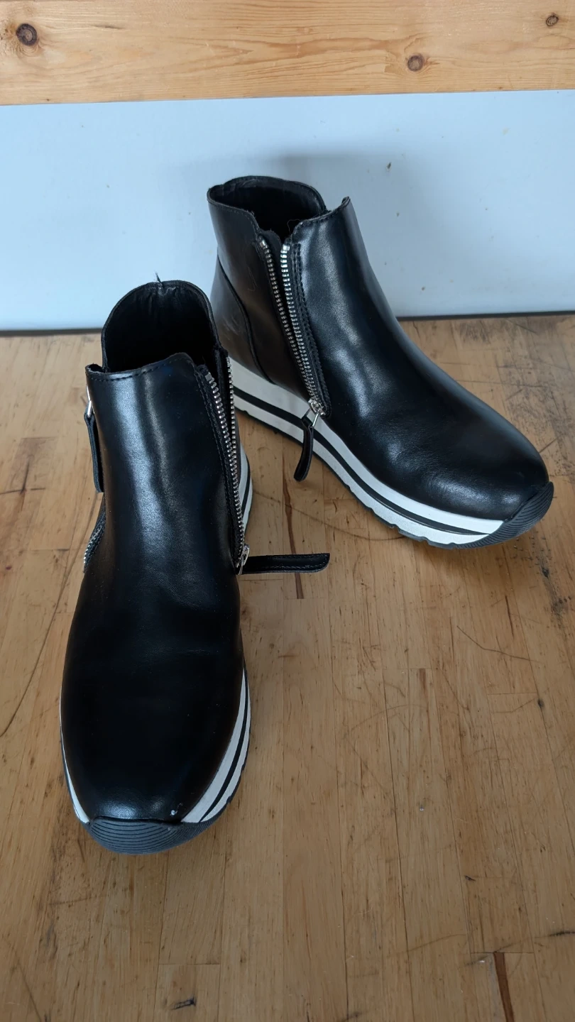 Black Wedge Ankle Boots with Side Zippers on both sides