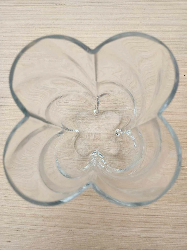 Vintage Kosta Boda clear glass clover vase. 6.5" x 4.5" x 4.5"