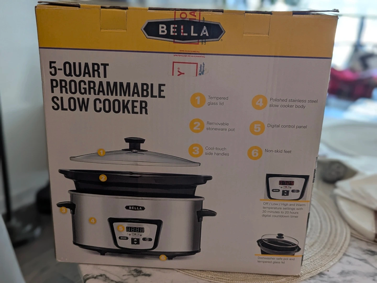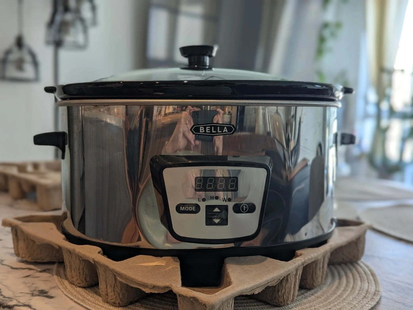 This BELLA 5-quart programmable slow cooker is perfect for preparing family meals. It features a tempered glass lid and a removable stoneware pot. The digital control panel offers multiple settings for convenience.