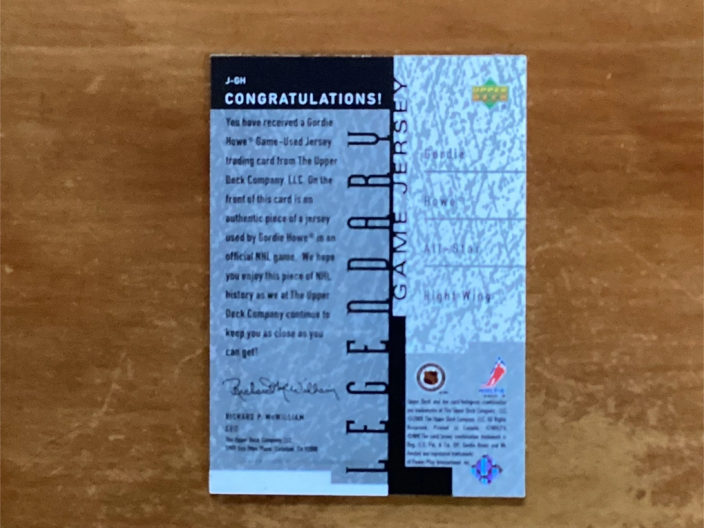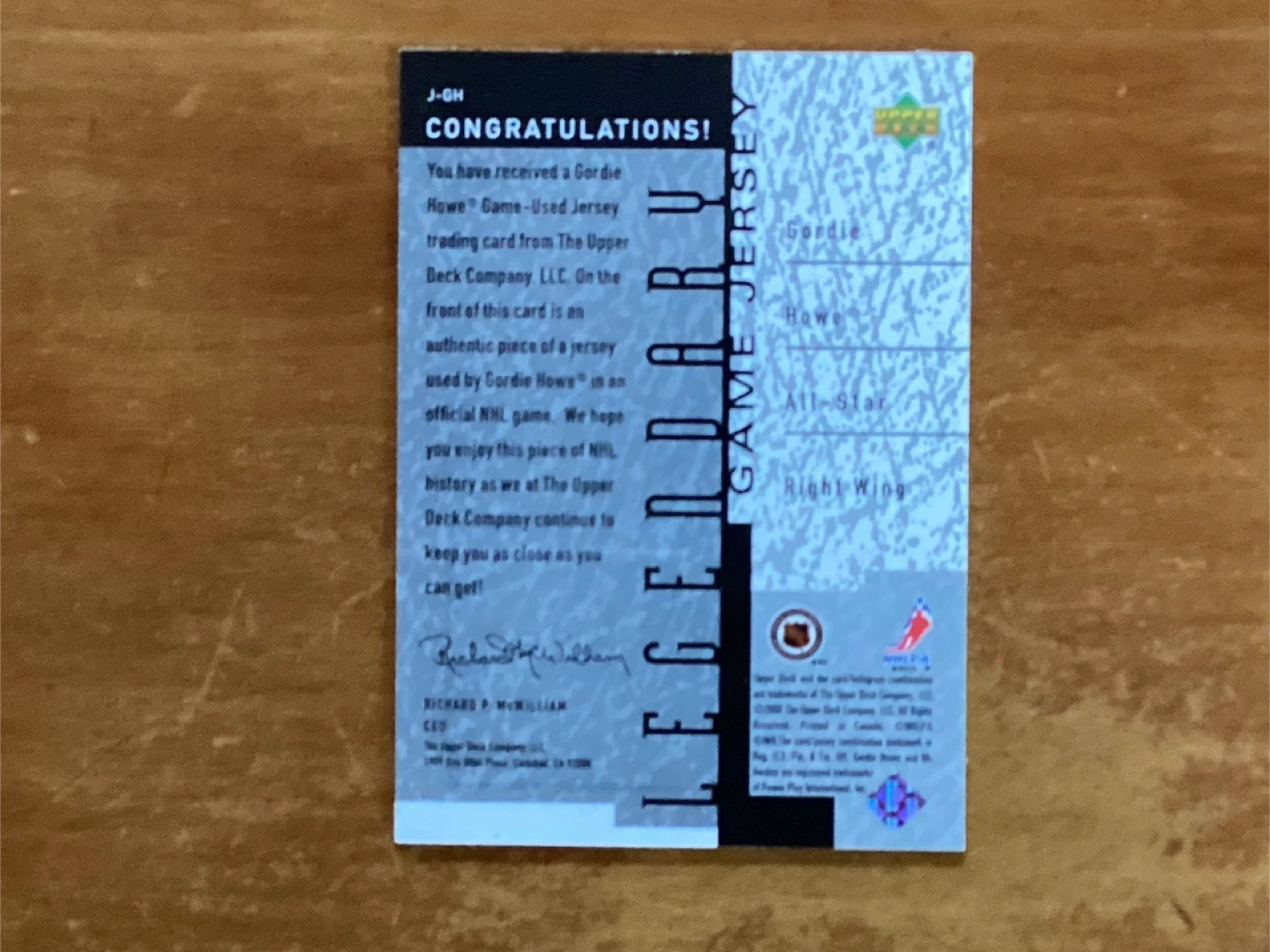 2000/01 UPPER DECK GORDIE HOWE Card J-GH LEGENDARY Game Jersey